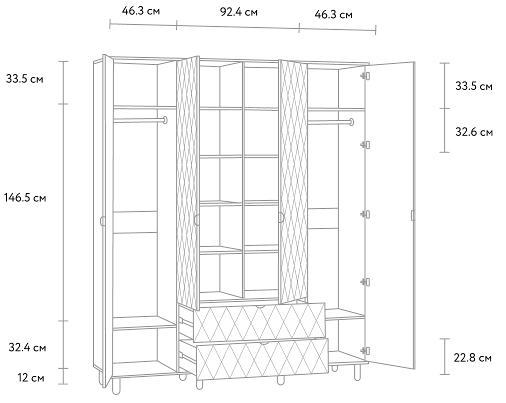 На дополнительных схемах указаны размеры полезного пространства системы хранения.