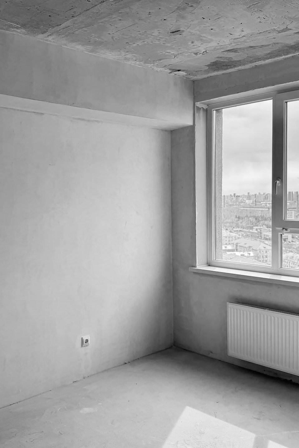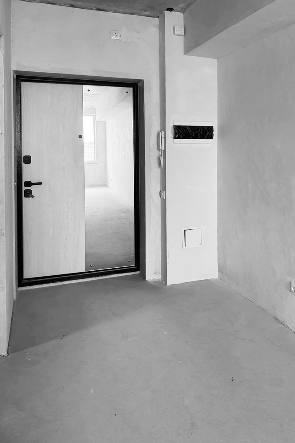 Застройщик сдавал объект в предчистовой отделке: на полу залита цементная стяжка, стены выровнены под покраску, электрика и сантехника разведены.