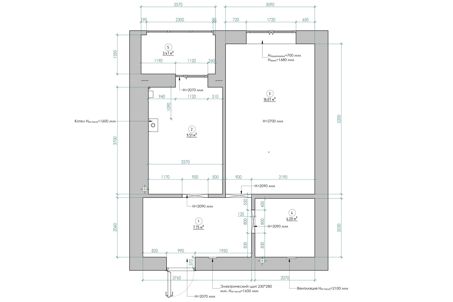 Высота потолков: 2,7 м