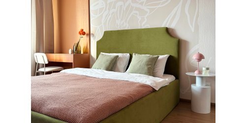 «Эта квартира готовилась под сдачу в долгосрочную аренду, — рассказывает дизайнер. — Заказчик, интересный и творческий человек, попросил спроектировать запоминающийся интерьер. Мне была предоставлена полная свобода творчества: чем ярче, тем лучше. Я давно хотела поэкспериментировать с цветной мебелью и… бинго! Ну а вишенки на торте проекта — парящая лестница и простенок из стеклоблоков для зонирования. Заглянем в гости».