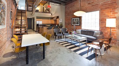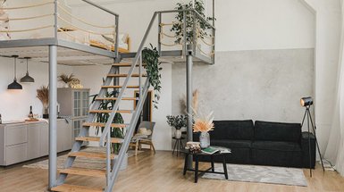 Бетонный верх и минималистичный низ: владелец этой квартиры попросил дизайнера оставить черновую отделку потолка — получился эффектный интерьер в стиле лофт.