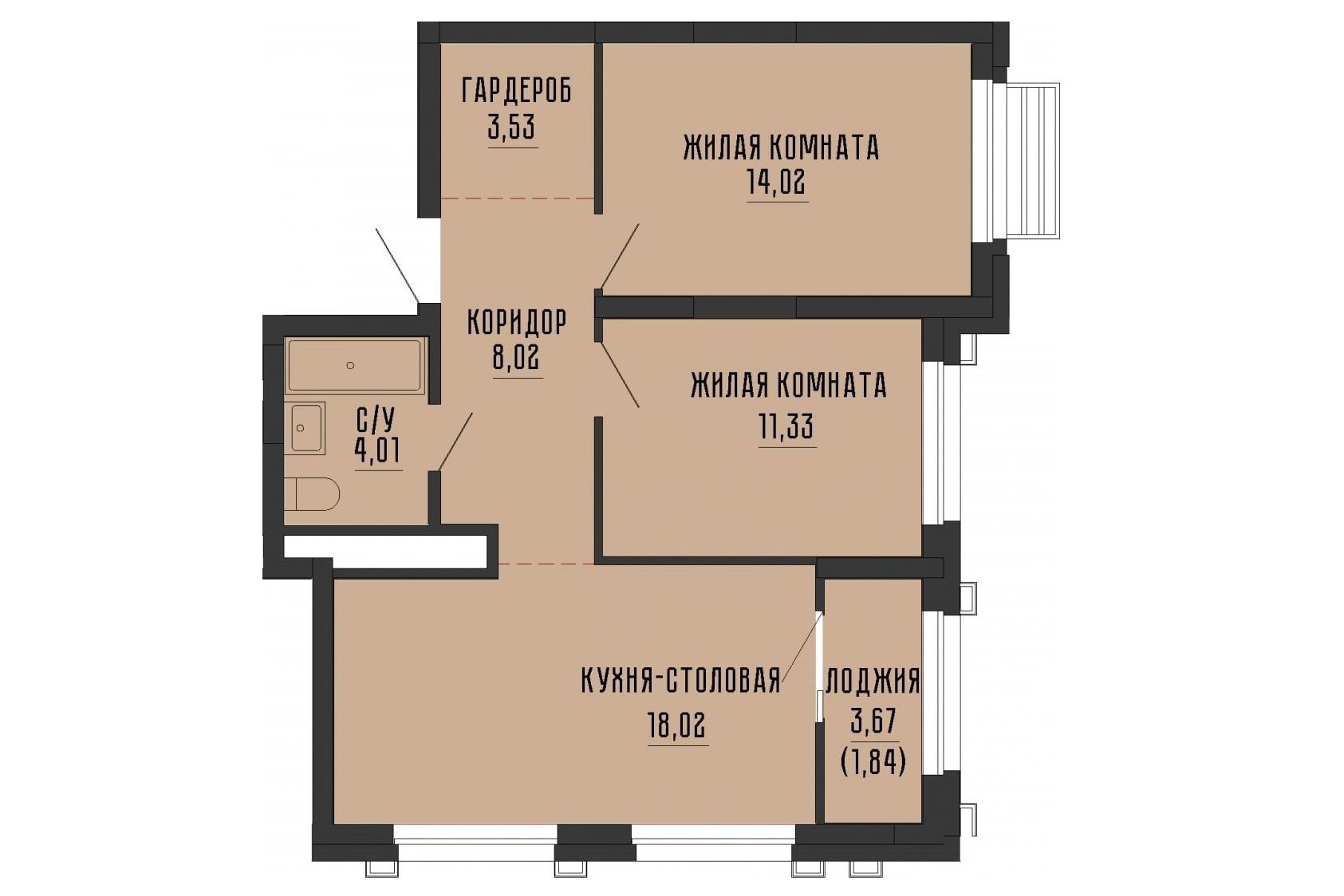 Объект: евротрешка 60 кв.м в новостройке