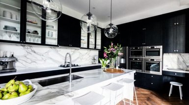 Здесь может быть вариация любого из предыдущих кухонных решений. Особенностью этого типа является наличие не только функциональных предметов, но и множества красивых вещей, которые хочется показать миру. В этой кухне обязательно присутствуют шкафы-витрины, стеклянные фасады, открытые полки.