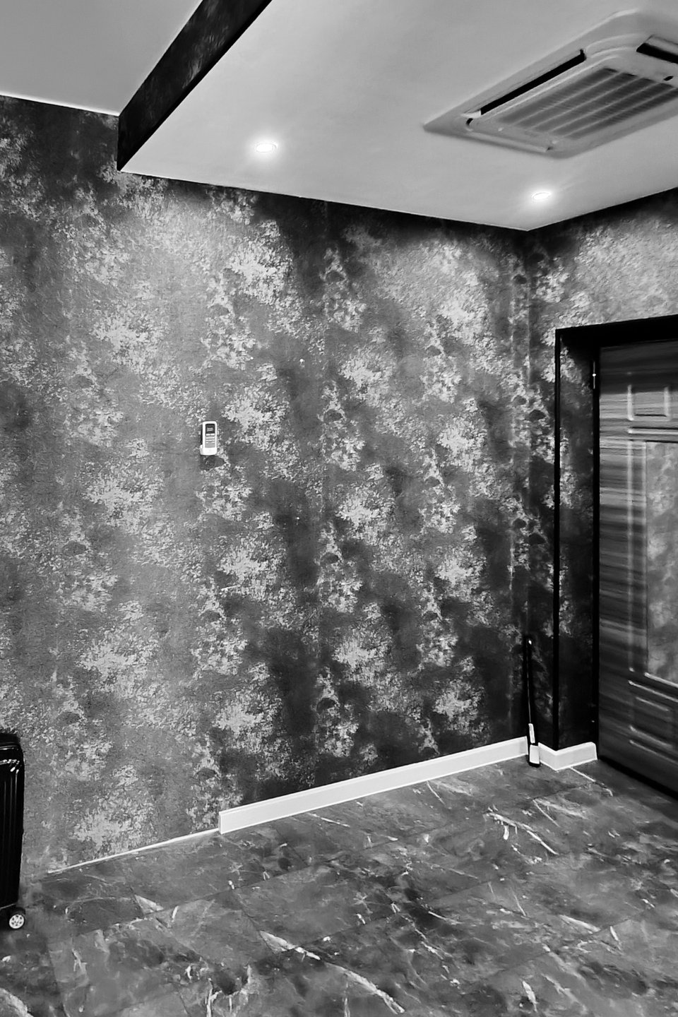 Стены и потолки в комнатах закрыли гипсокартоном и покрыли белой антивандальной краской. На пол планировали уложить инженерную доску, но из-за технических ограничений заменили ее на кварц-паркет со шпонированным верхним слоем в оттенке орех.