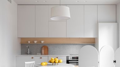 - На фото 3: интерьер кухни в квартире 43,8 кв.м, ЖК «Преображение». Дизайнер-архитектор: Дарья Шатилова; фотограф: Наталья Вершинина