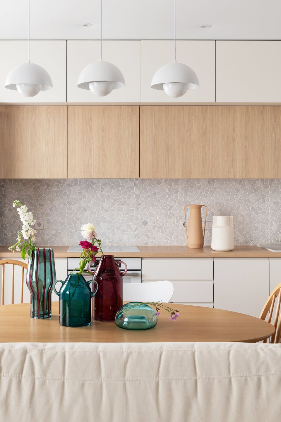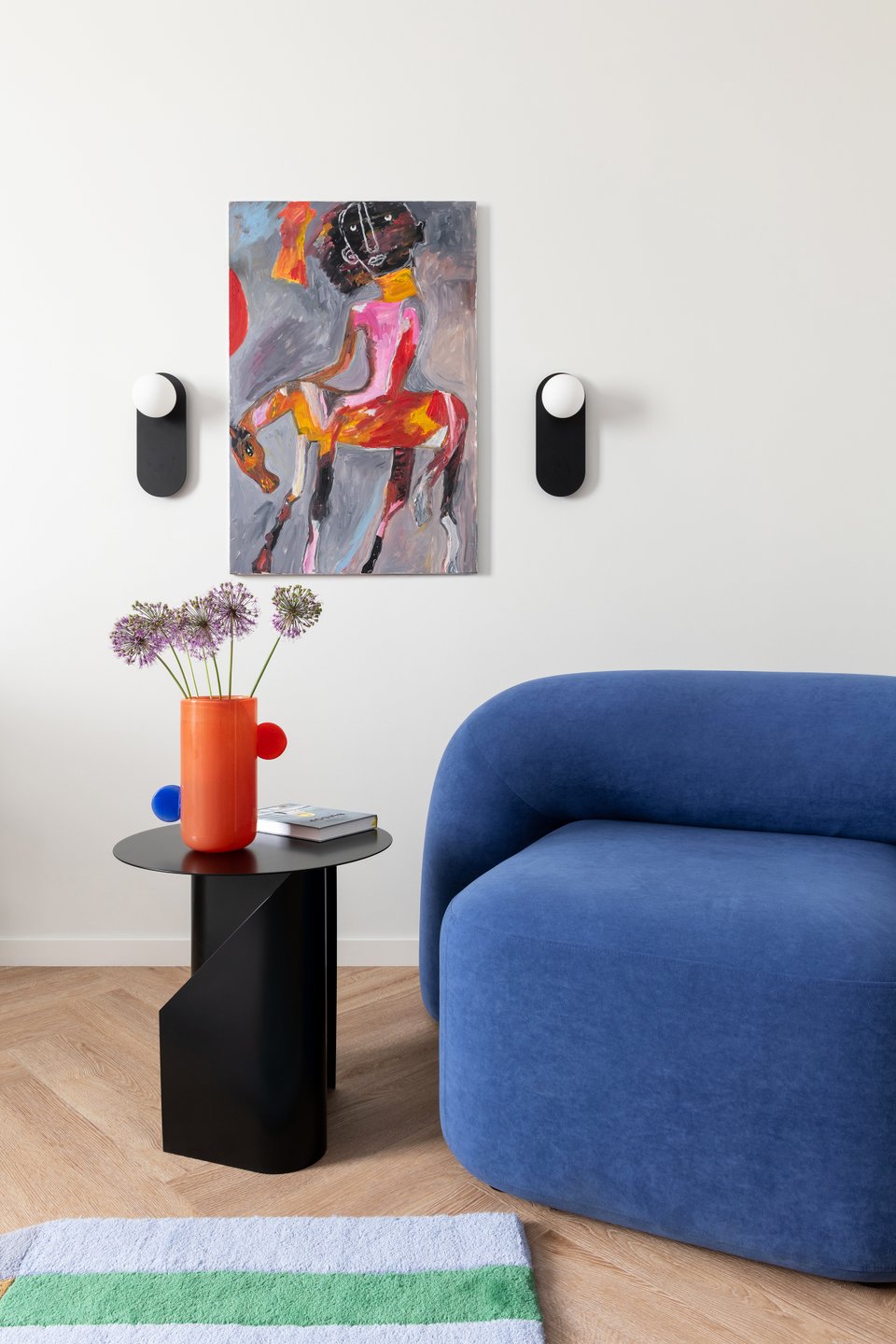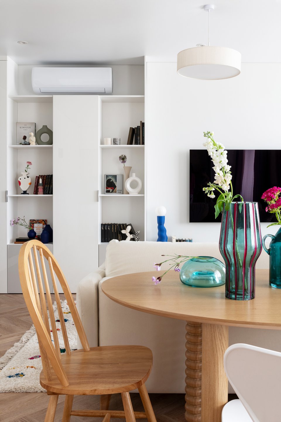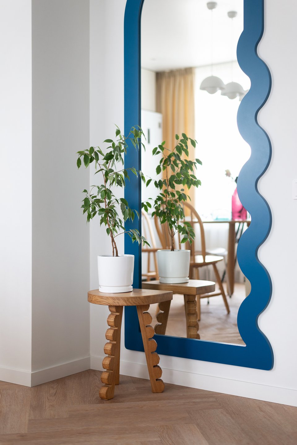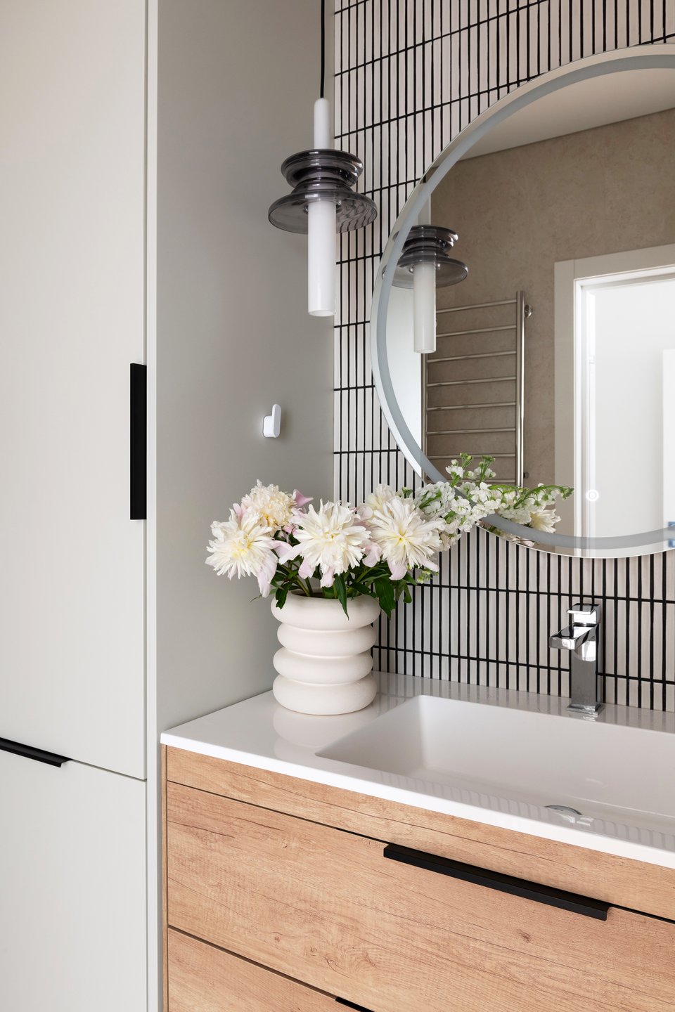 «Интерьер получился эклектичный. Интересный стилистический микс: база светлая, характерная сканди, но здесь же яркие акценты и современные формы, характерные стилю мемфис. Я бы назвала этот интерьер "дофаминовый"», — рассказывает дизайнер.