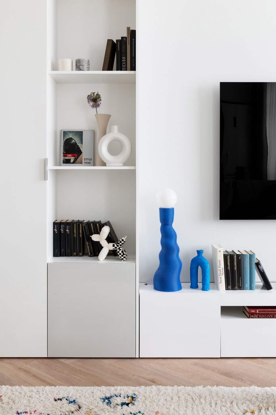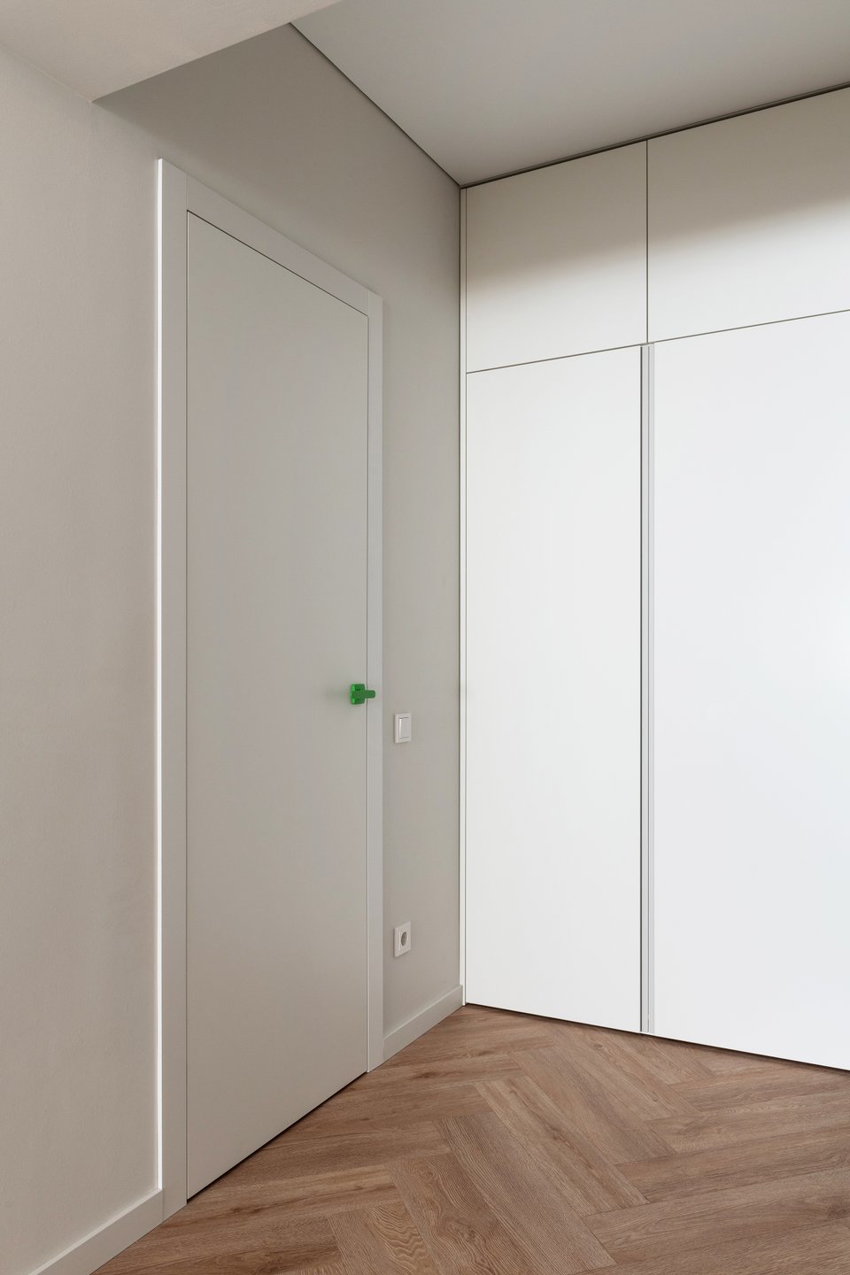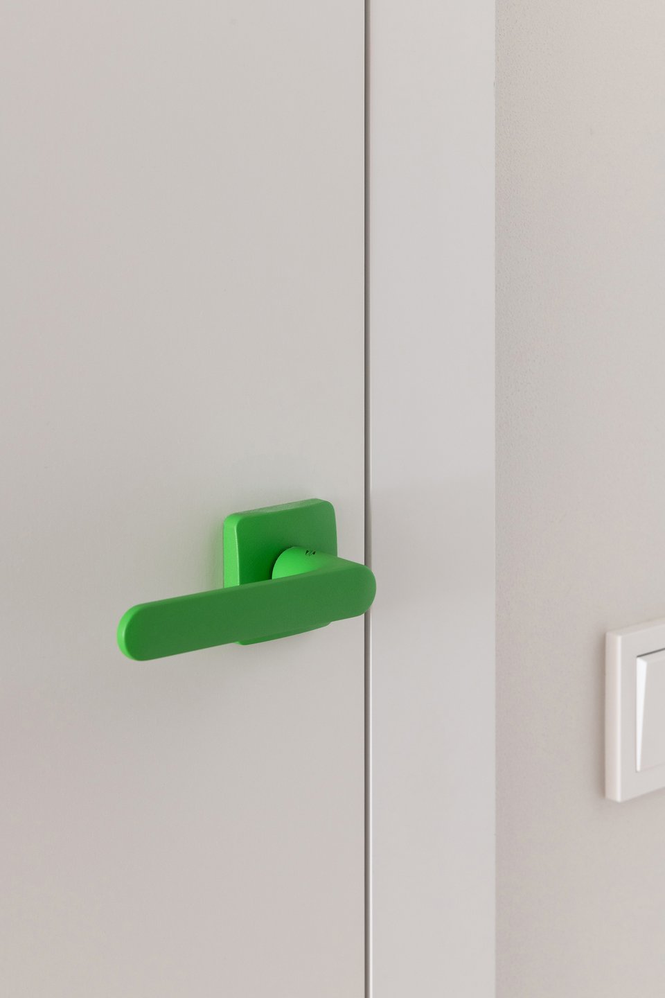 «Самым необычным предметом интерьера стали дверные ручки, — рассказывает дизайнер. — Эта идея нам с заказчиками понравилась на этапе концепта, и мы не хотели с ней расставаться. Найти подобное в России оказалось невозможно, как и сделать на заказ. У меня уже даже была мысль самостоятельно перекрасить обычные ручки в цеху. Но чудо произошло! Гуляя по Венеции, я случайно увидела коробочку с цветной фурнитурой в одной из витрин магазина. Я тут же зафиксировала бренд и отправила заказчикам. А по приезде мы смогли заказать на зарубежной платформе свою маленькую цветную мечту».