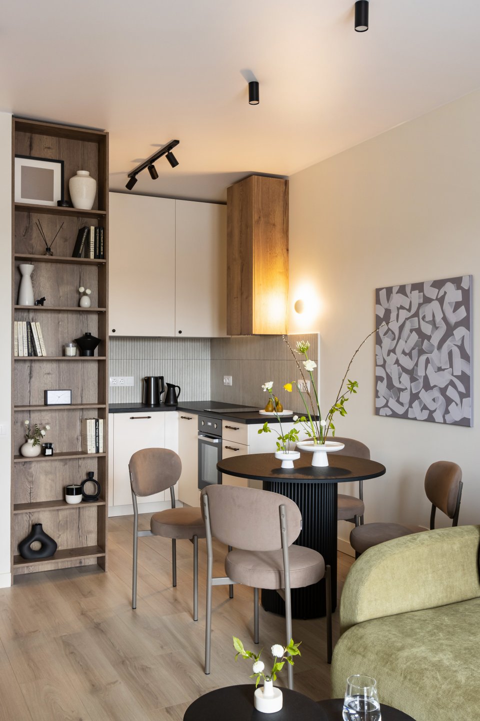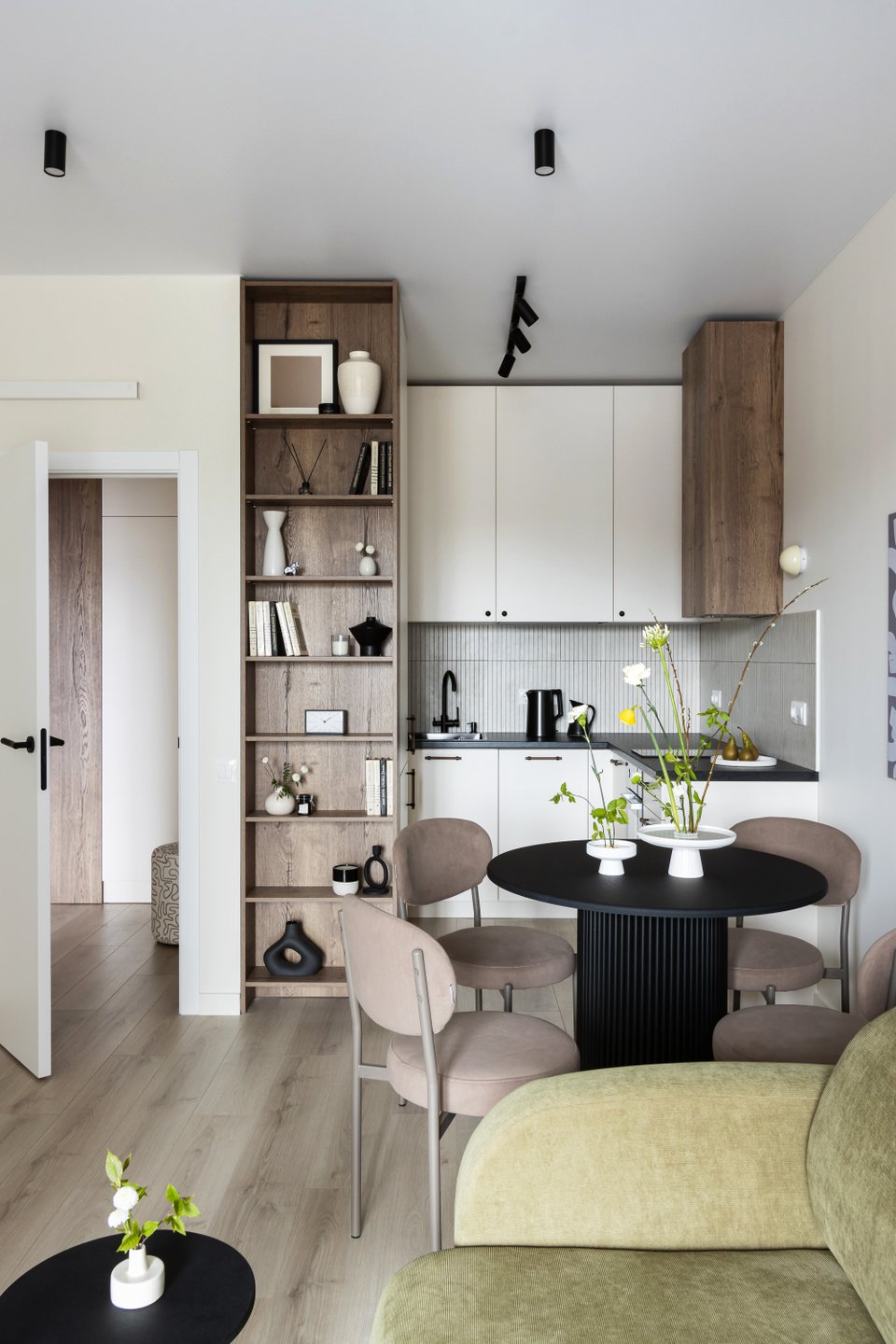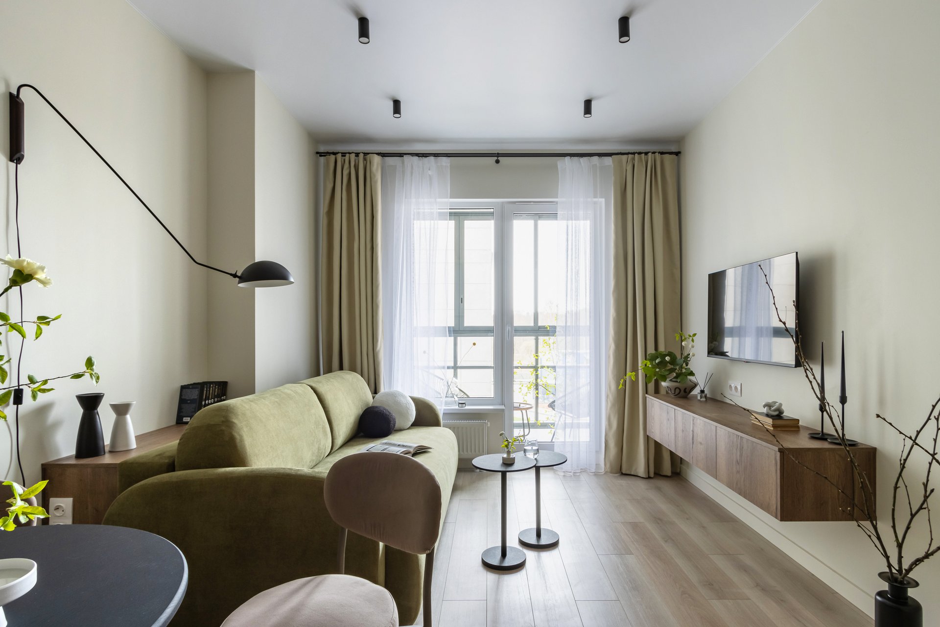 Эта квартира расположена в спокойном курортном районе Санкт-Петербурга: на берегу канала, с прогулочными зонами, беседками и площадками для отдыха. Интерьер задумывался как логичное продолжение окружающей среды: спокойный, светлый и комфортный. Посмотрим ближе.