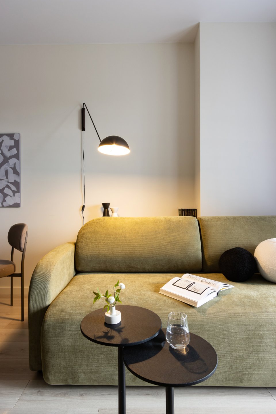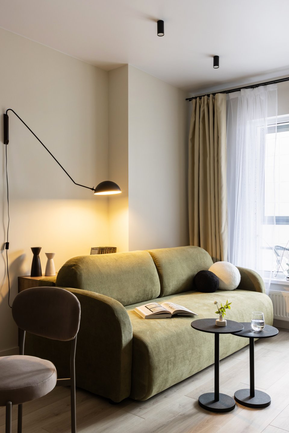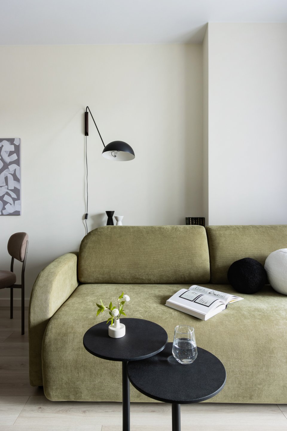 Диван Клаймар от бренда divan.ru в обивке Мола «Олива» стал центром зоны отдыха. Эту модель мы выбрали из-за удобного механизма трансформации и мягких округлых форм, которые делают пространство уютным.