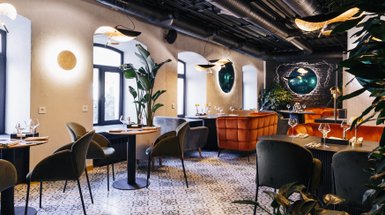 Проект реализовали за три месяца. Отделку усложняла высота стен — 4,3 м. «Для коммерческих помещений особенно важно сделать ремонт максимально быстро, — комментирует автор проекта. — Поэтому разработка велась параллельно с реализацией. Все придумывалось, проектировалось и корректировалось сразу. Материалы и мебель выбирали из наличия, чтобы не приходилось ждать».