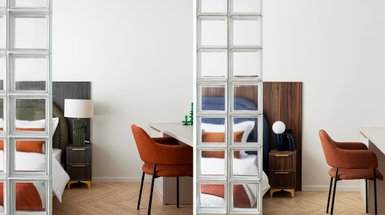 «Хотелось найти что-то необычное, привлекающее внимание, — комментирует свой выбор дизайнер. — На глаза попался диван Тилар от Диван.ру. Я сразу поняла — это именно то, что нужно. На сайте есть возможность выбрать любую ткань, мой выбор пал на яркий терракотовый цвет. Для кресла подобрали обивку зеленого цвета. Комод Модерн дополнил картину и стал ярким акцентом в зоне ресепшен».