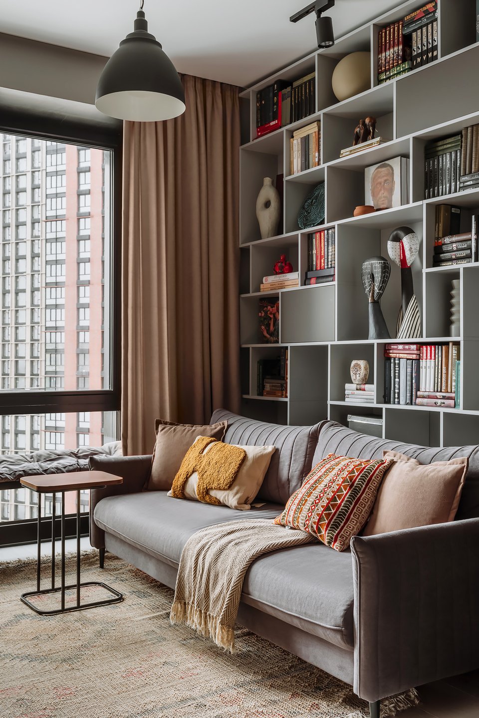 На фото: интерьер квартиры 60 кв.м, ЖК «Метрополия». Автор проекта и хозяйка квартиры: дизайнер Катарина Притчина; декоратор: Яна Яхина; фотограф: Ольга Шангина