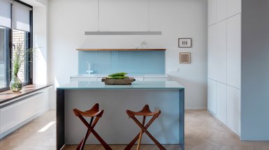 - На фото 3: пуф в интерьере квартиры 40 кв.м в г. Москве. Дизайнер: Наталья Калентьева (@kalenteva_natalia); стилист: Оксана Ипатова; фотограф: Дина Александрова