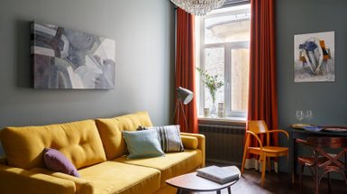 На фото: интерьер квартиры 47 кв.м. Дизайнер: Александра Никулина; стилист: Ирина Чертихина; фотограф: Наталья Горбунова