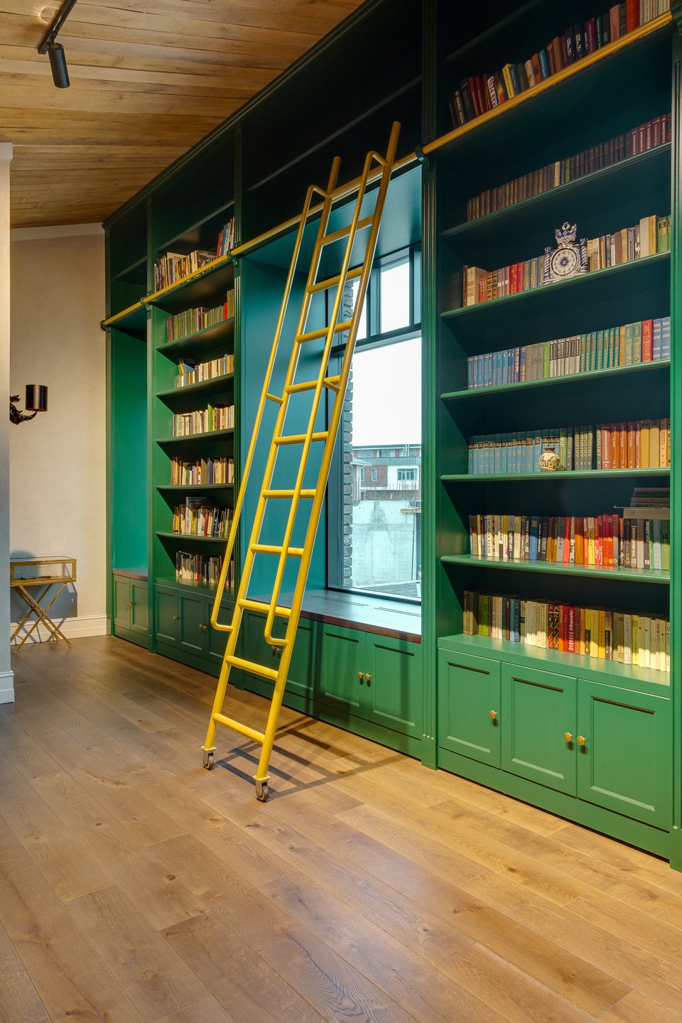 Шкафы в потолок. Стеллажи от пола до потолка — идеальное решение для обладателей большой домашней библиотеки: они позволяют хранить сотни томов, не занимая при этом много места. Для доступа к верхним полкам вам может понадобиться передвижная стремянка на роликах, которая сама по себе станет изящным элементом декора.