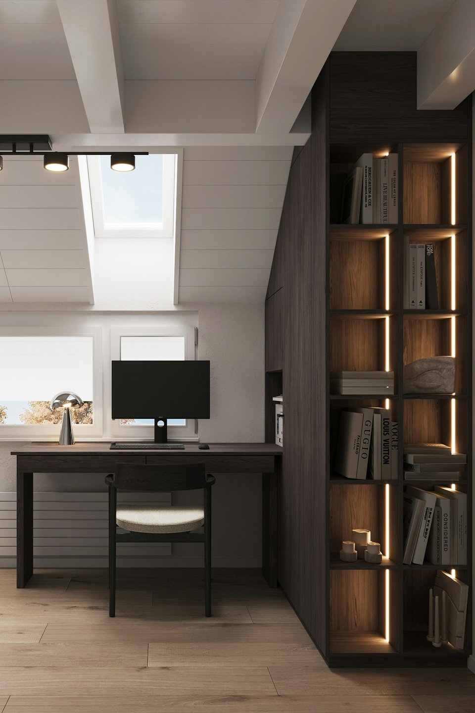Помните, что книги нужно защищать от прямых солнечных лучей, а светильники выбирать с теплым светом (2700–3000 K), который не утомляет глаза во время длительного чтения.