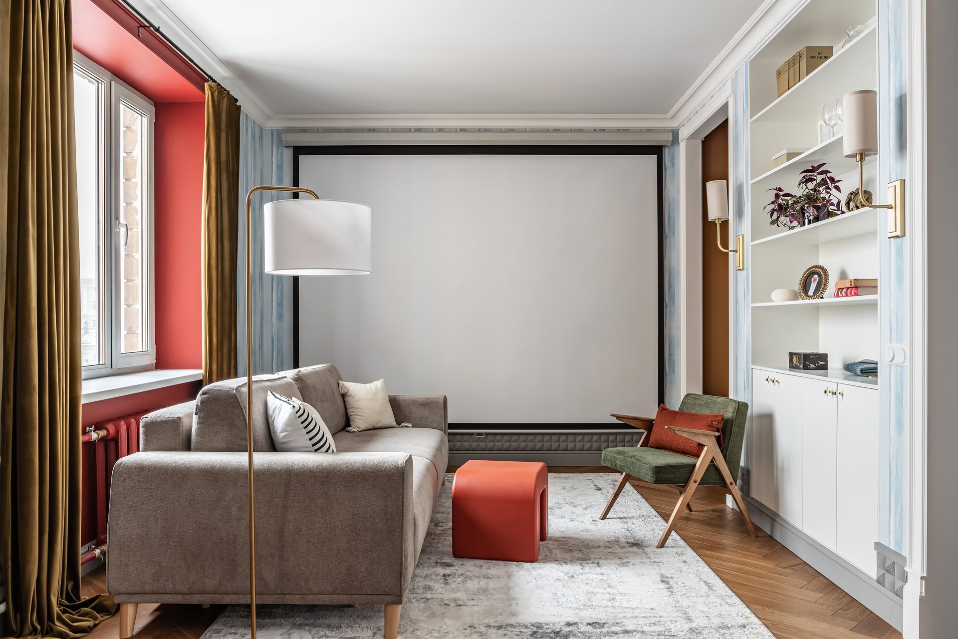 - На фото 1: двушка 54 кв.м, ЖК «Соборный». В кадре кресло Пайл от divan.ru. Дизайнеры: Настя Рыбакова и Надя Степанова; фотограф: Дарья Петренко