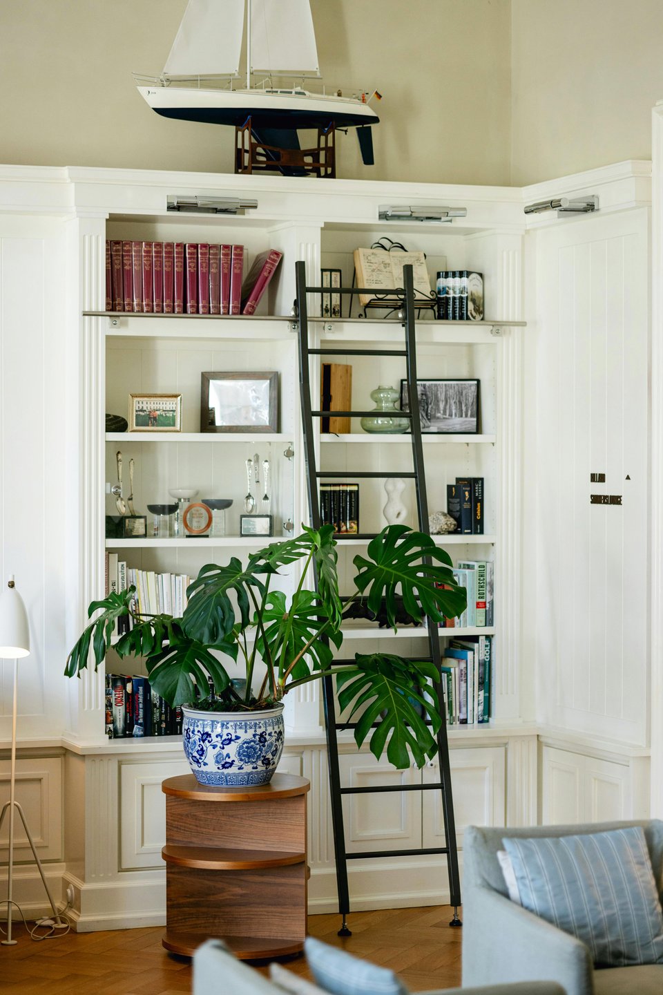 Совет: если вы часто мерзнете, найдите место для уютного пледа или одеяла, чтобы они всегда были под рукой. Удобство — это то, что превращает формальную библиотеку в любимый уголок дома.