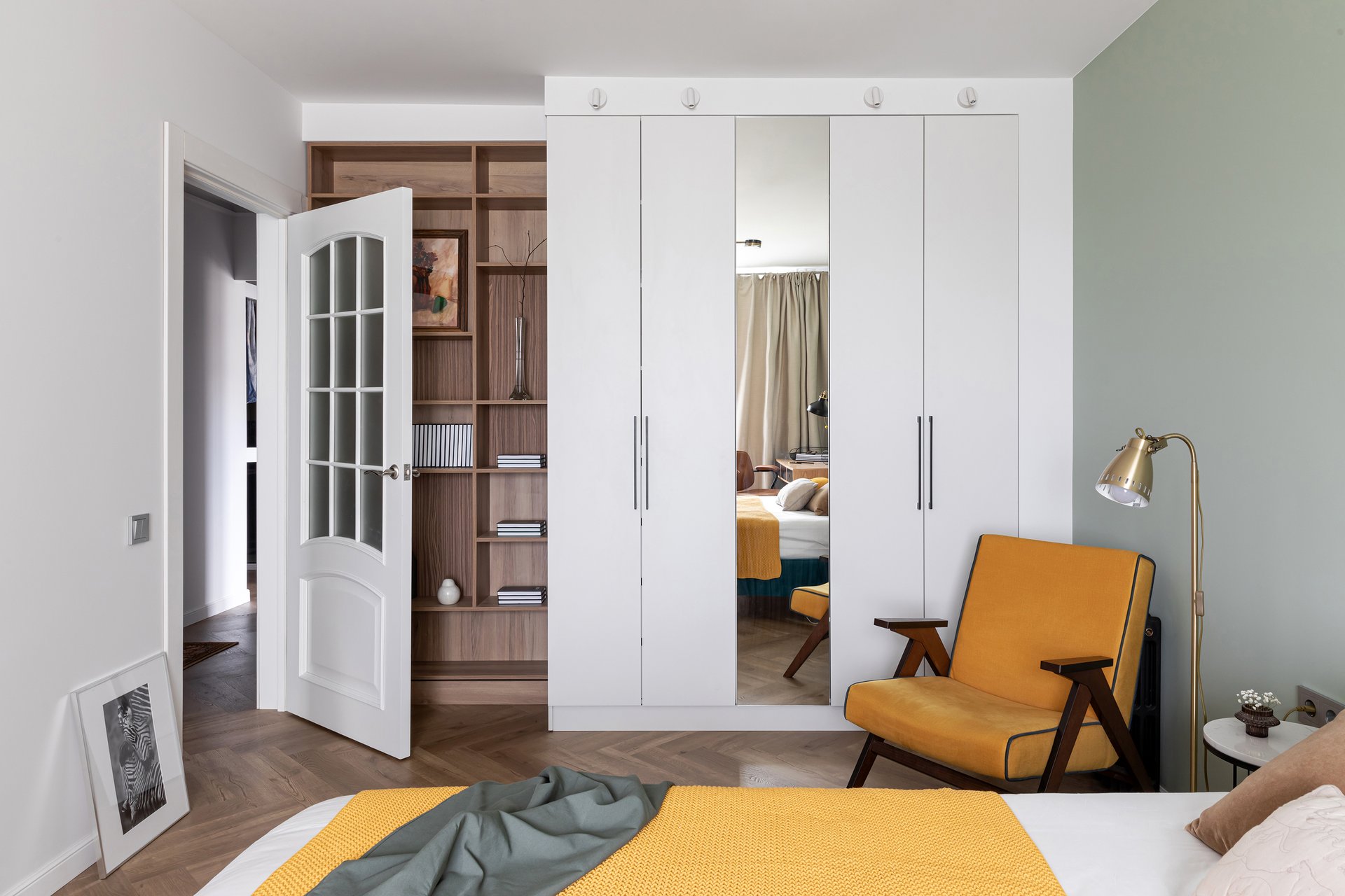 - На фото 2: однушка 50 кв.м в г. Москве. В кадре распашной шкаф Кимбол-3 от divan.ru. Дизайнер: Анна Суворова; фотограф: Екатерина Будюк