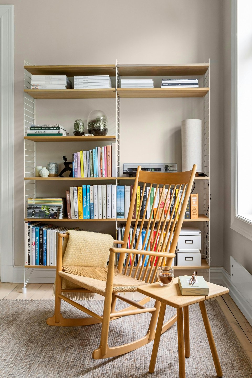 Комбинируя вертикальную и горизонтальную расстановку, вы можете разбить монотонность стеллажей и создать более динамичную и уютную композицию.