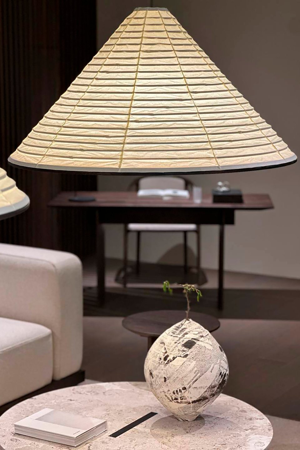 Светильники должны быть направлены в потолок, создавая мягкое сияние. Идеально подходят традиционные лампы из рисовой бумаги — акари, созданные знаменитым дизайнером Исаму Ногути. Они дают теплый, уютный свет, напоминающий лунный.