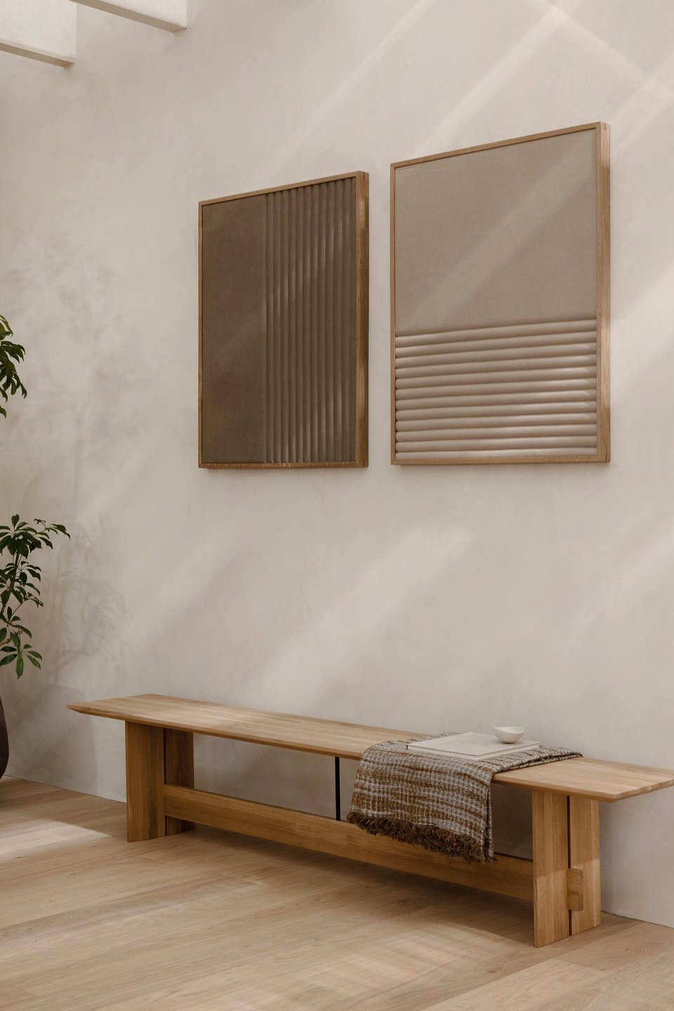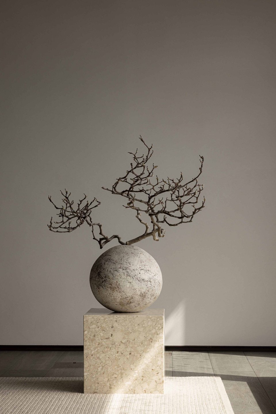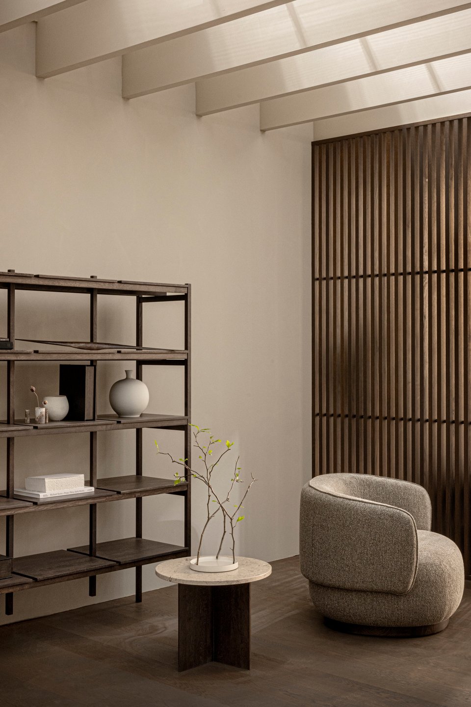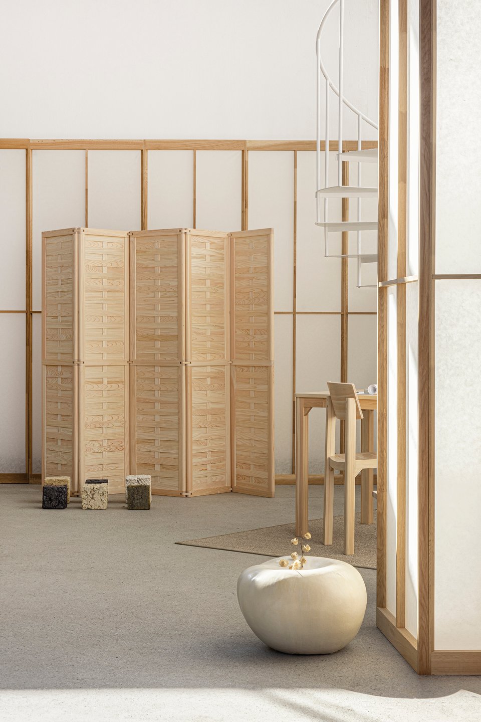 Основу составляют три кита: белый, бежевый и серый, но в их самом «природном» звучании. Первый — это тон рисовой бумаги, матовый и мягкий. Второй — как песок, бамбук или глина. Третий похож на туманное утро или натуральный камень. Они создают тот самый идеальный фон, на котором уже работают текстуры.