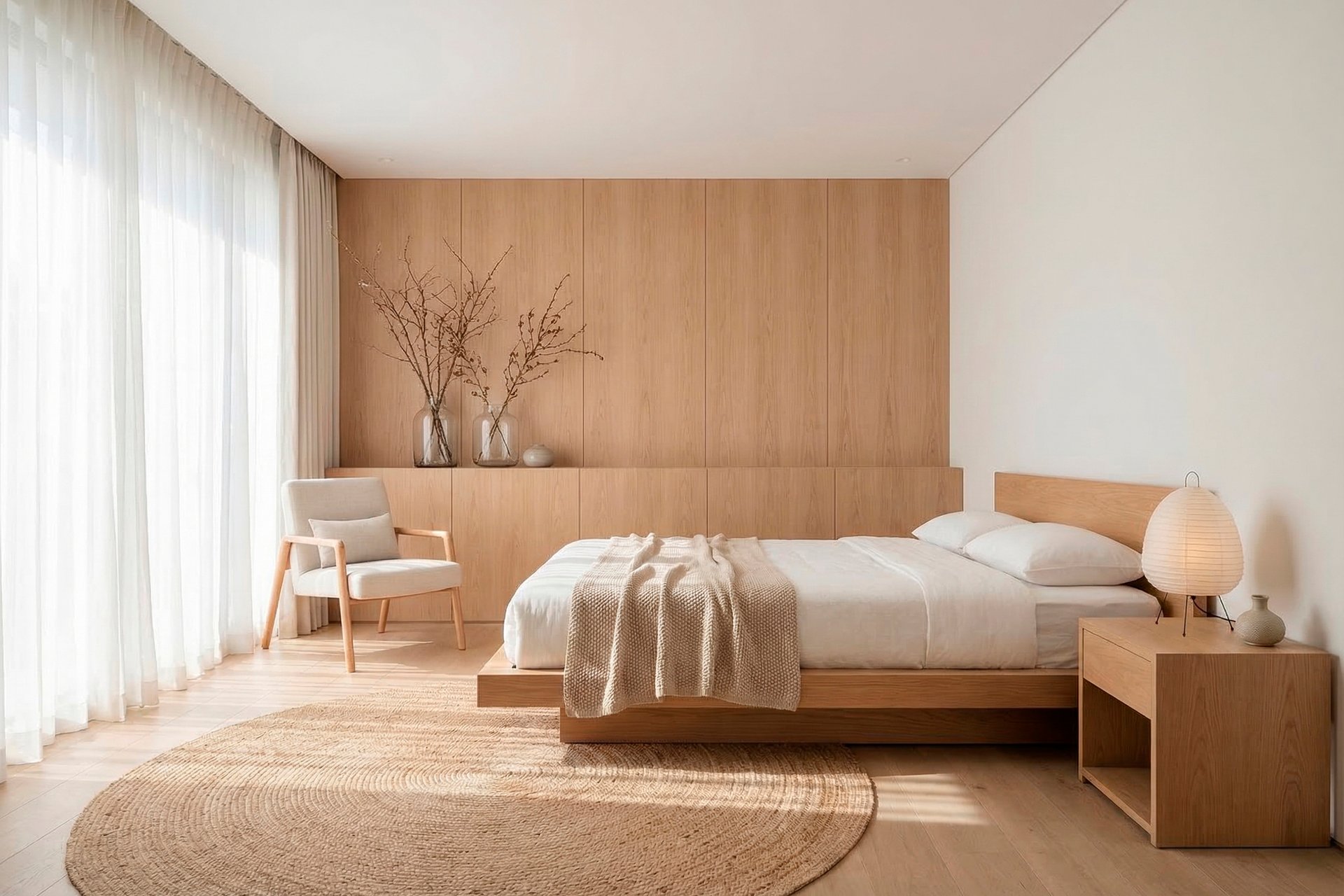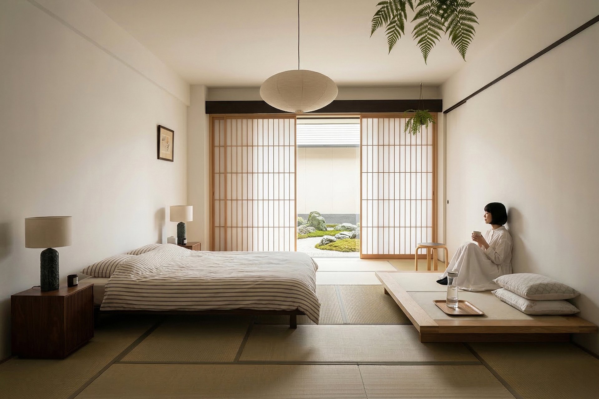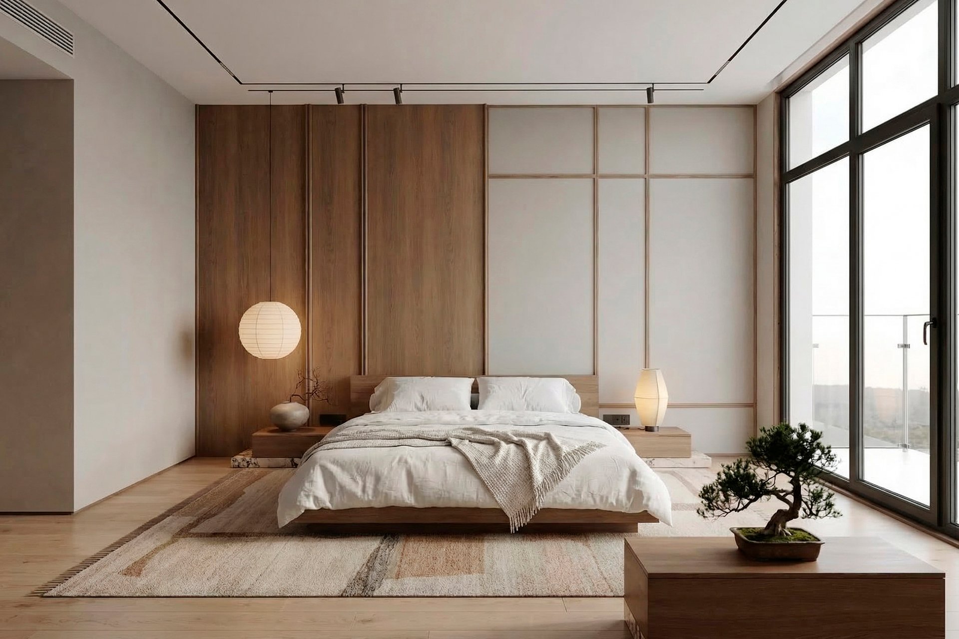 Интерьер спальни в японском стиле — это способ превратить обычную комнату в тихое убежище, где голова действительно отдыхает. Низкая кровать, мягкий рассеянный свет, теплое дерево и обилие воздуха вместо нагромождения вещей создают ощущение спокойствия, как в традиционной азиатской гостинице — рёкане. В этой статье покажем на понятных примерах, как добиться такого эффекта даже в типовой хрущевке или новостройке — без дорогого ремонта и сложных решений.