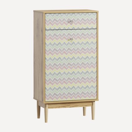 Обратите внимание на акцент: геометрический узор на плитке. Кстати, идею с орнаментом не обязательно использовать на пол — можно перенести на мебель: вашему вниманию эффектные обувницы из ассортимента Диван.ру: