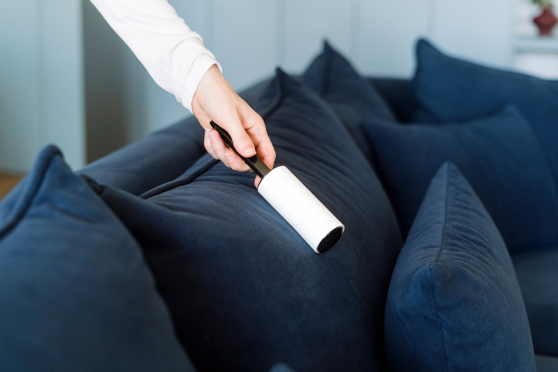 - Убрать шерсть с ворса пылесосом не всегда получается, а вот липкий ролик не подводит — он соберет даже мелкие шерстинки и волосы.