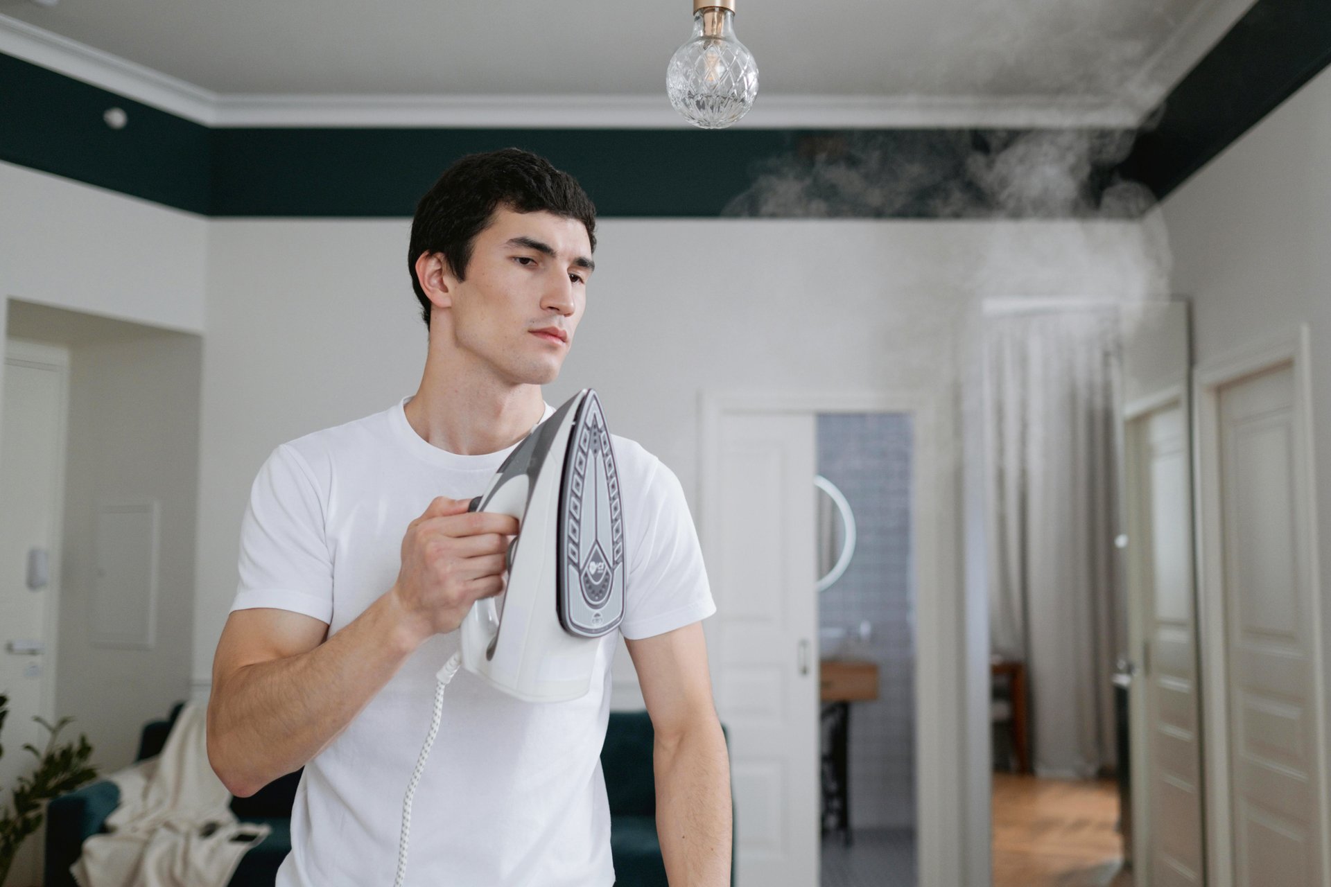 Чтобы восстановить первоначальный вид и вернуть ворсу объем, поверхность нужно обработать паром, используя бытовой отпариватель или утюг.