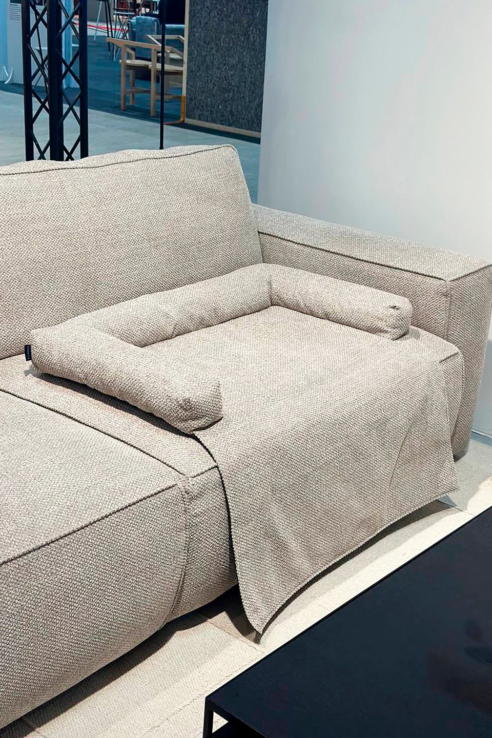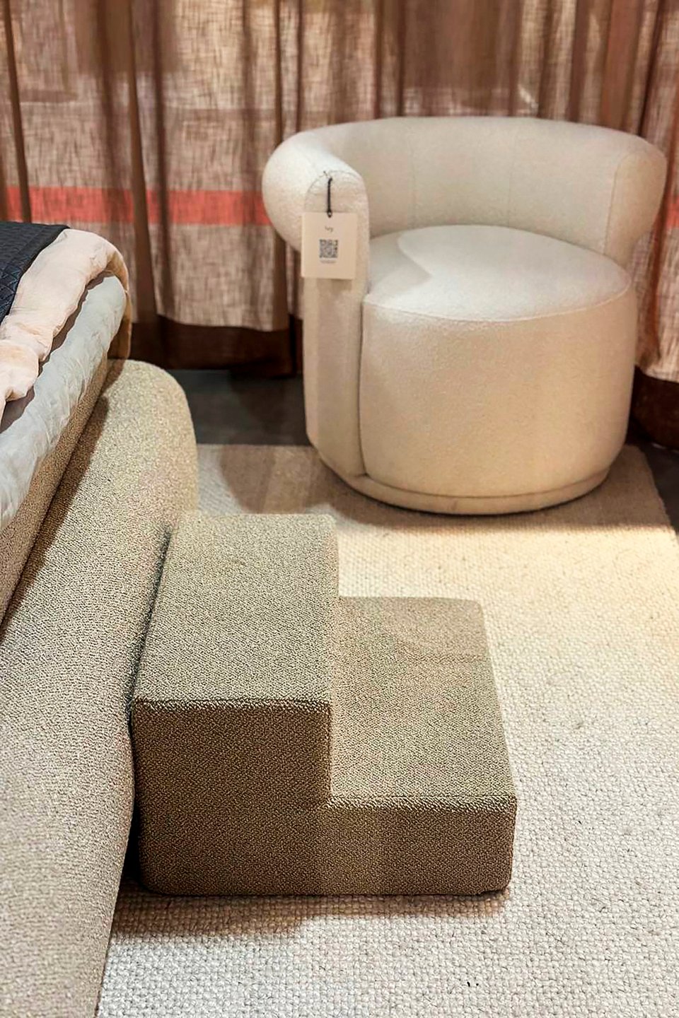 Посмотрите на фотографии с Maison&Objet (Париж, январь 2026). Здесь хорошо видно, как привычные вещи — лежанки, ступеньки, переноски — переосмысливаются и становятся полноценными интерьерными и акцентными объектами.