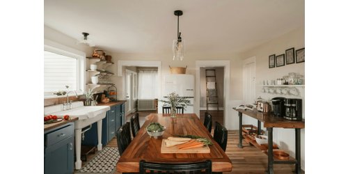 - На фото 2: интерьер кухни в доме 100 кв.м. Дизайнеры: Ольга Савина и Евгения Курындина, архитектурное бюро VILLARCH; фото из личного архива дизайнеров
