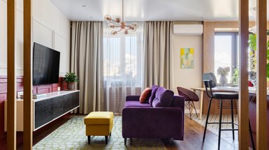 На фото: интерьер гостиной в квартире 87,5 кв.м в г. Санкт-Петербурге. В кадре диван угловой Порту от divan.ru. Дизайнер: Анастасия Березинец, студия At Home Interior; фотограф: Наталья Мавренкова