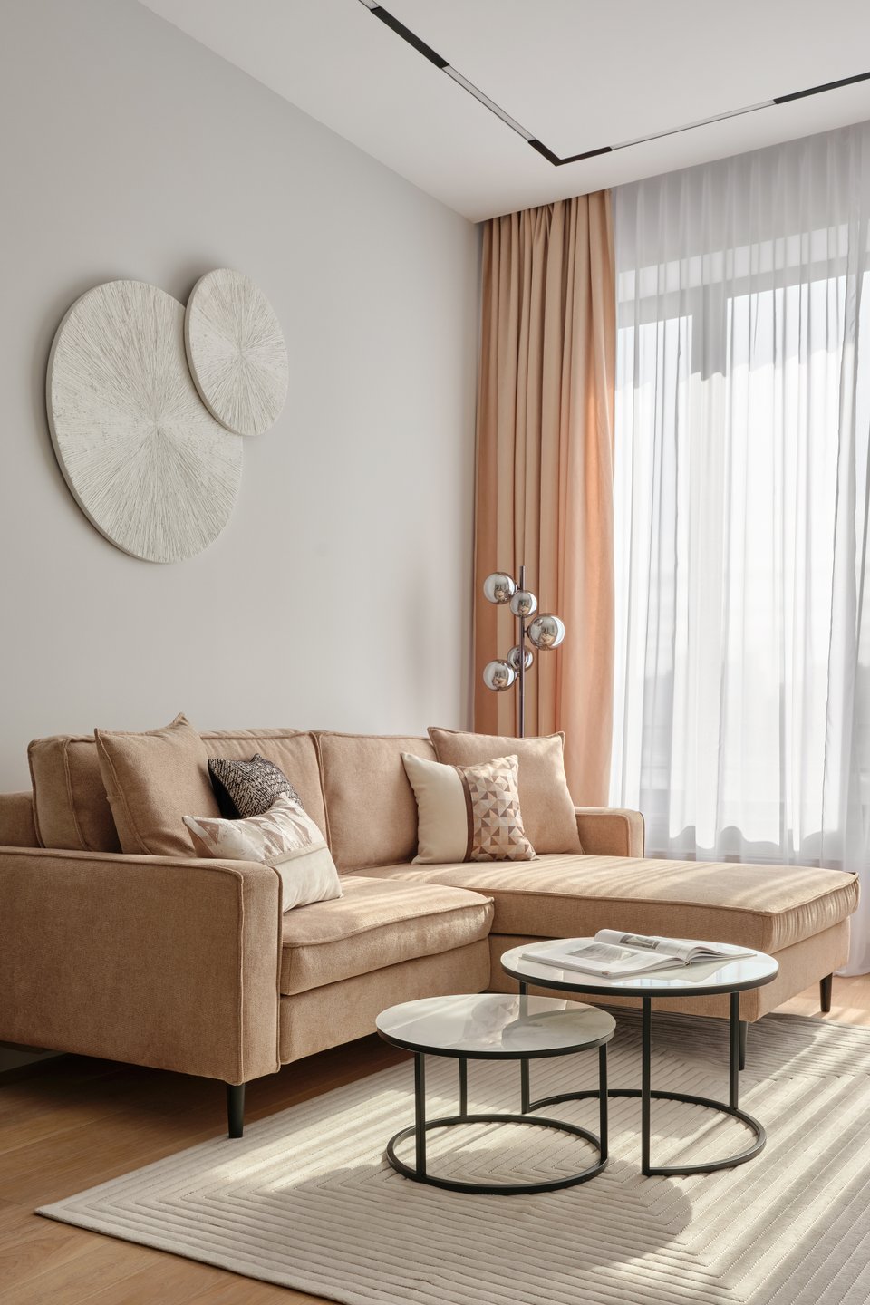 - Стильный, современный интерьер в спокойных оттенках бежевого и тауп.