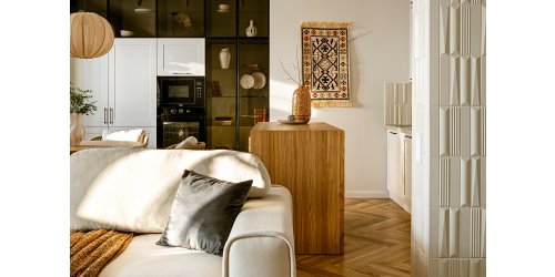 Маленький метраж не стал помехой для реализации идей хозяйки по функционалу — в этой небольшой квартире есть кухня, гостиная с рабочим местом, отдельная спальня, достаточно хранения и шкафов. Посмотрим, как это стало возможным.