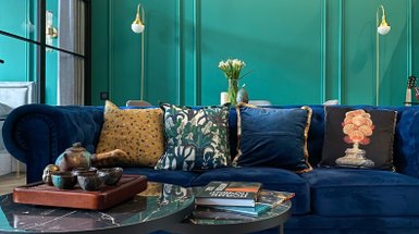 Дарья Сабельникова — галерист и арт-менеджер, предоставляет пространство для организации выставок начинающих художников. В своей квартире она не просто живет. Здесь Дарья устраивает экспозиции картин и собирает шумные компании творческих людей. Цветовая гамма интерьера должна быть подобрана таким образом, чтобы выгодно подчеркивать произведения искусства и не затенять их. Дизайнер Евгения Полещук посчитала белый фон слишком простым и скучным для этой цели и оформила квартиру арт-художницы эффектным сочетанием оттенков.