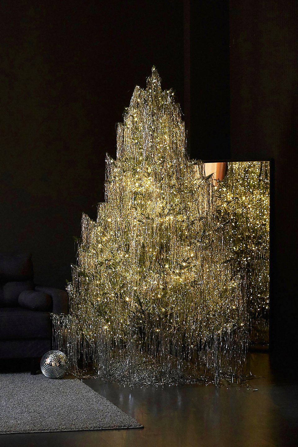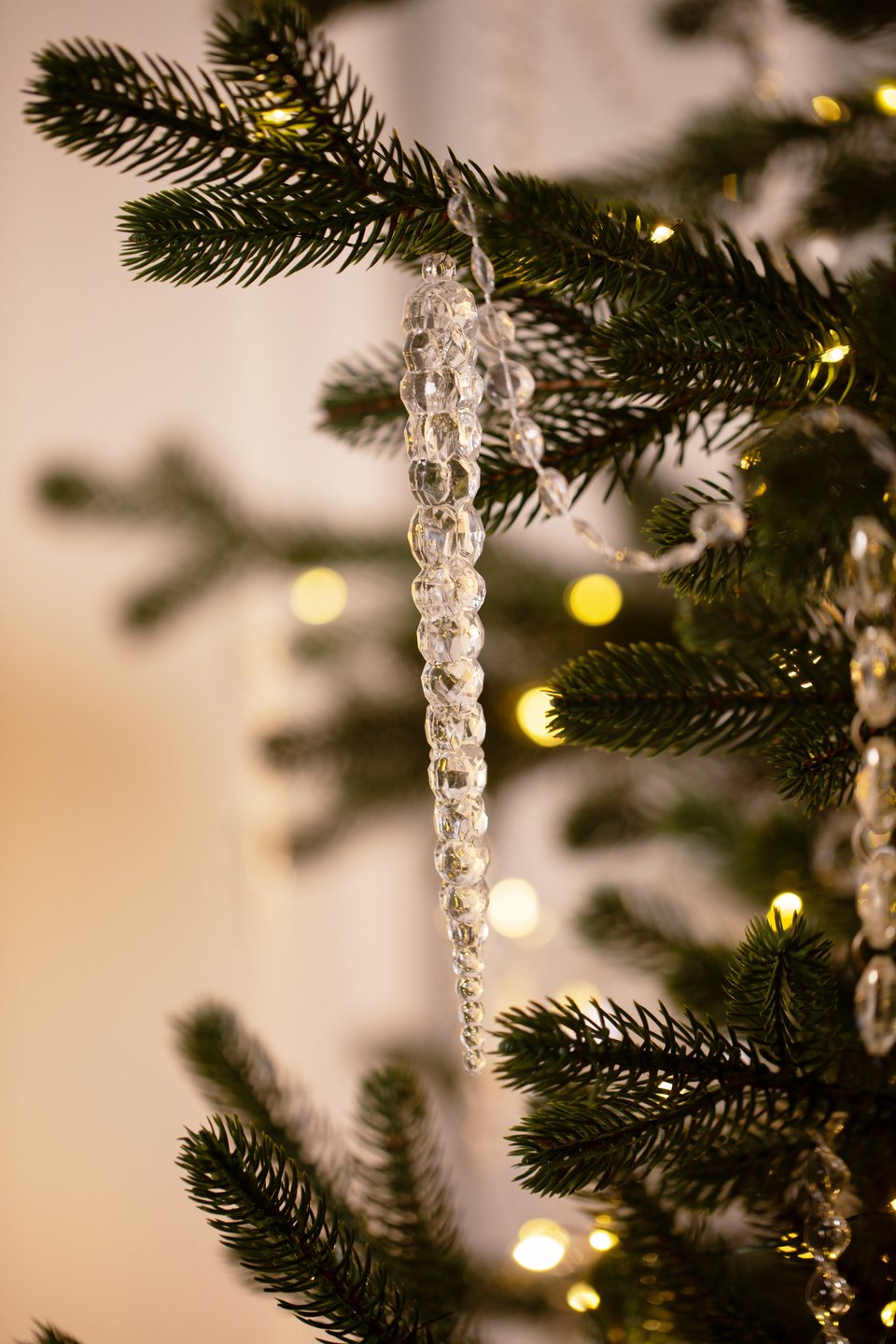 Альтернативная елка — без игрушек, но вся в «дождике» или стеклянных сосульках, как будто только что прошел ледяной дождь, и она заиндевела. Такой декор пока еще в новинку, но и он все чаще появляется на фото. Сейчас это два самых главных тренда новогодних украшений для дома на 2026 год.
