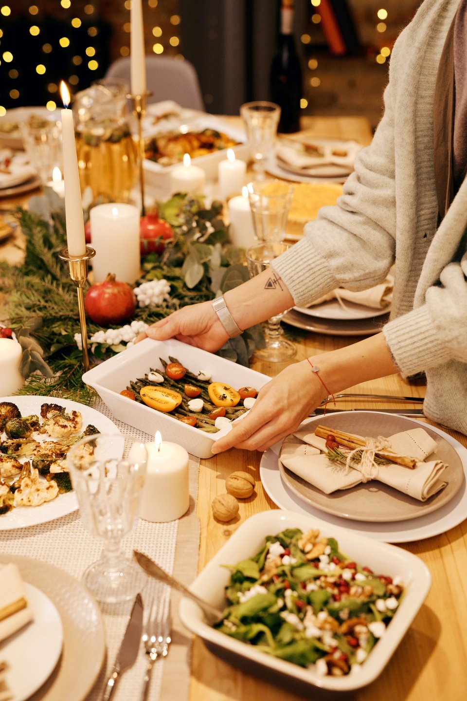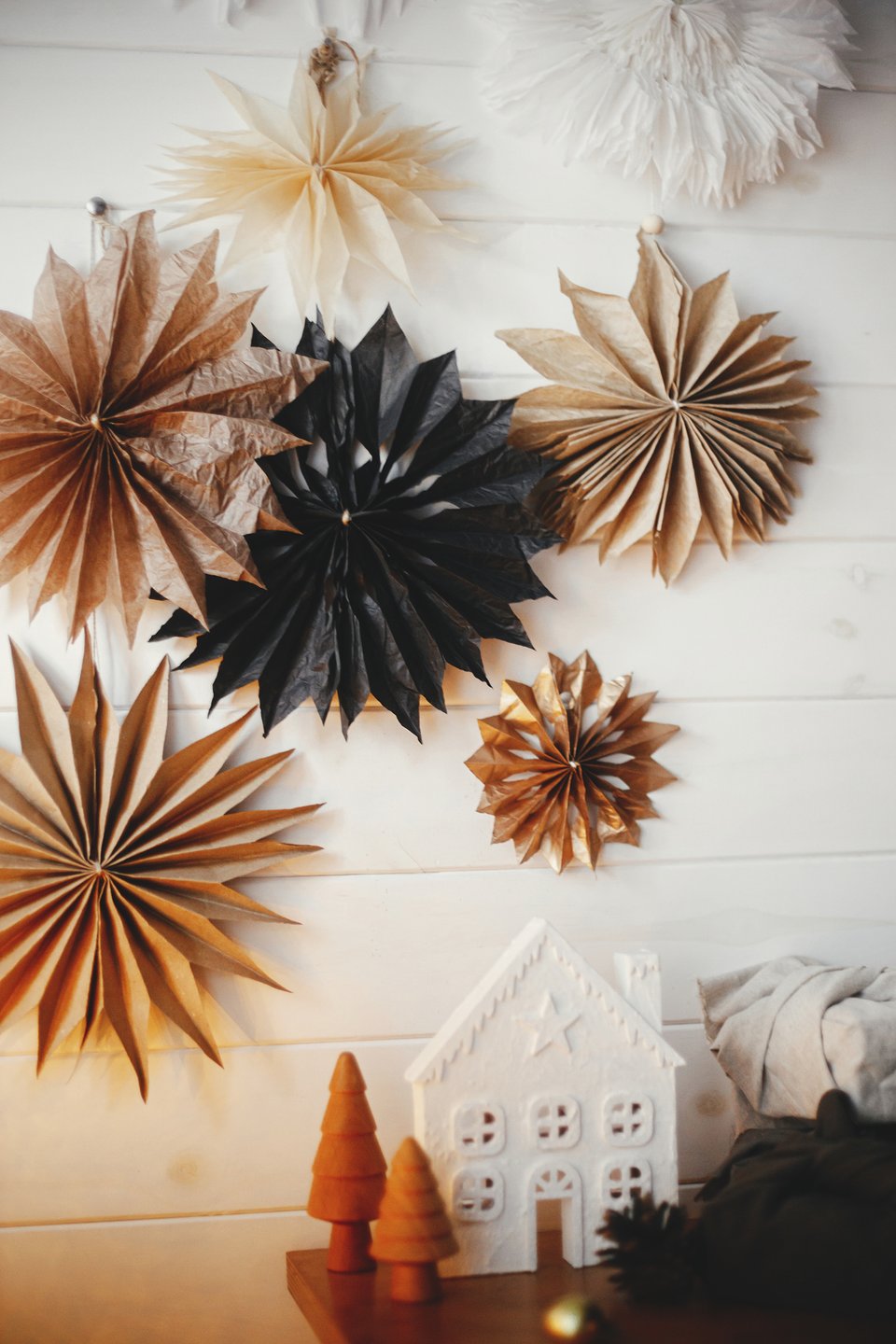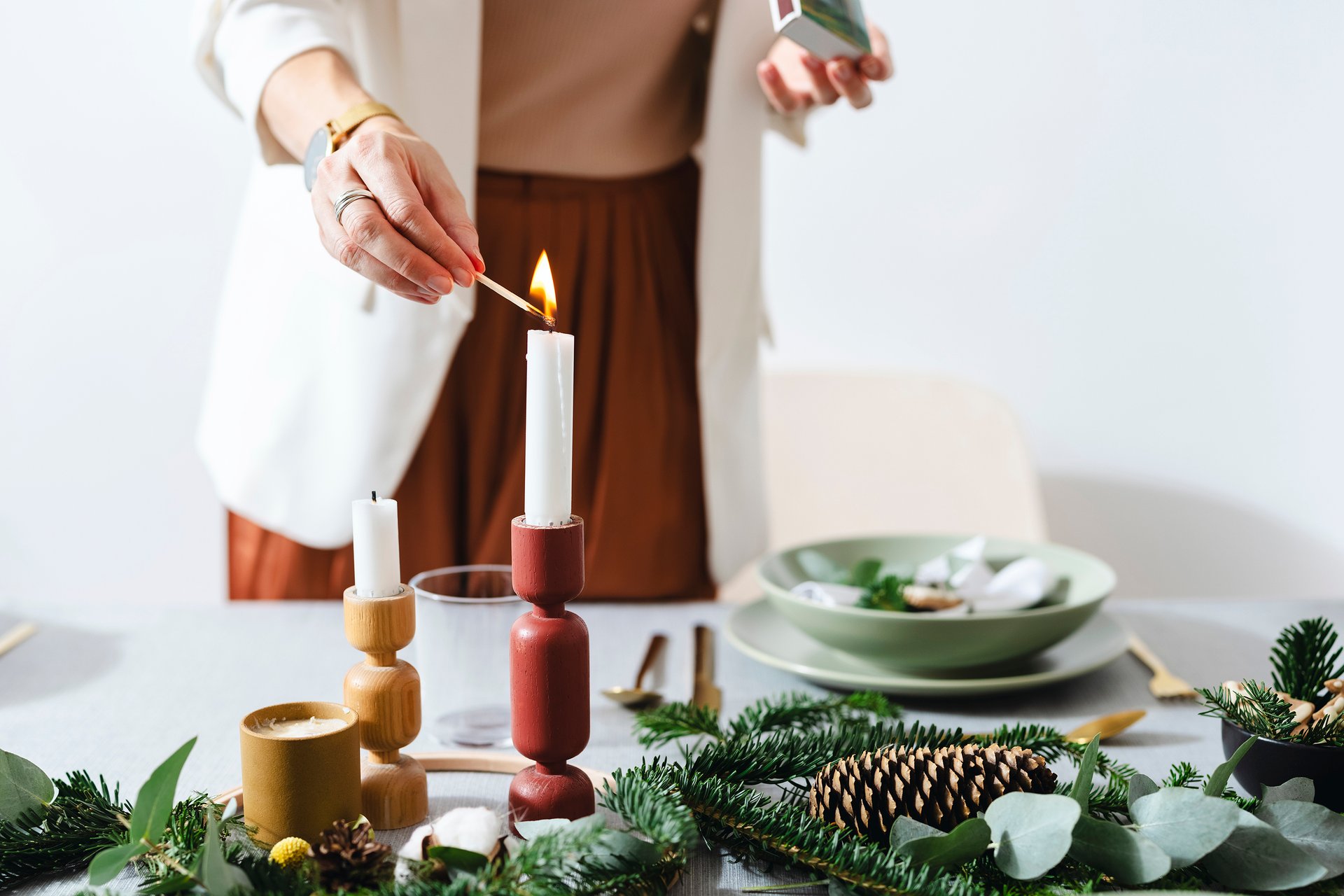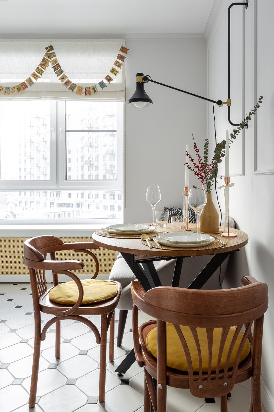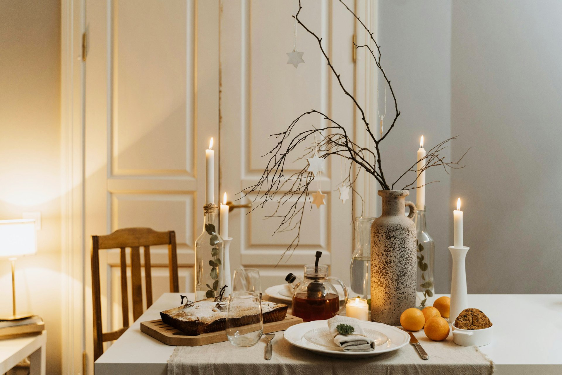 Сделайте ставку на то, что уже есть: нейтральный текстиль, простая посуда, минималистичные светильники. Добавьте несколько трендовых деталей: теплую гирлянду, пару стильных подсвечников, интересную хвойную композицию. Актуальный экологичный декор легко изготовить своими руками: например, сушеные апельсины, бумажные игрушки, простые венки. Не гонитесь за количеством украшений: пусть лучше их будет меньше, но хорошего качества.