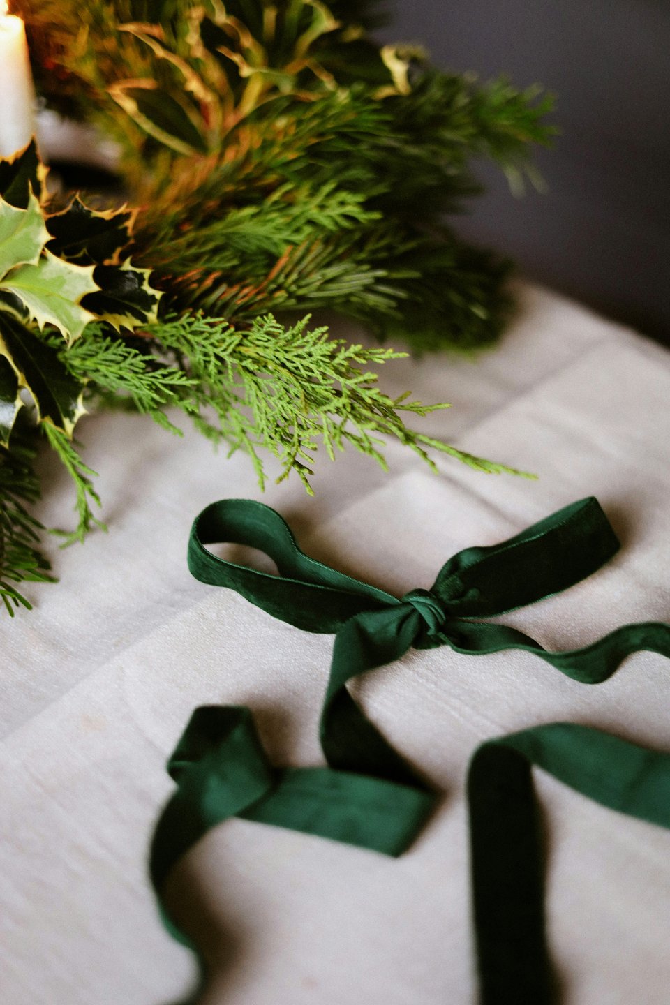 Акценты. Повесьте на дверь или разместите на полках венки, сплетенные из хвои, палочек корицы и бархатных лент.