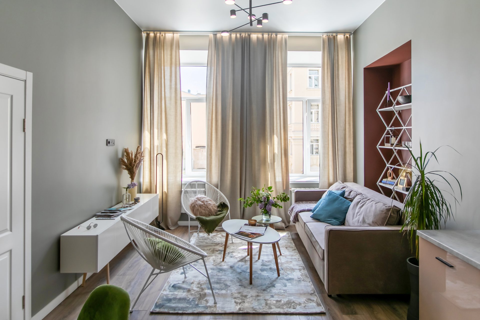 На фото: двушка 62 кв.м в г. Минске. В кадре диван прямой Нумо и ТВ-тумба Осака — все от divan.ru. Дизайнер: Елена Ерашевич; фотограф: Катя Самойлович