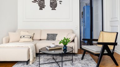 - На фото 3: интерьер квартиры 36,6 кв.м, ЖК «Синатра». В кадре диван Льери Мини от divan.ru. Дизайнеры: Екатерина Астафьева и Валерия Хуснутдинова; фотограф: Наталья Градусова