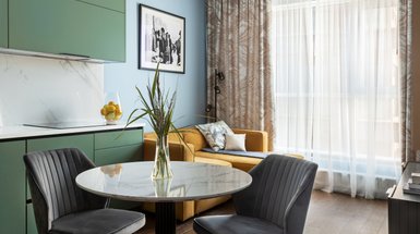 Соединяют разные предметы фактуры и формы. К примеру, классический диван обивают неопреном, а модное кресло — жаккардом. Или пару классических кресел дополняют минималистичным металлическим столиком, а в зоне столовой составляют микс из разных стульев.