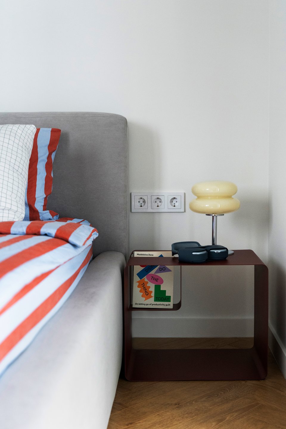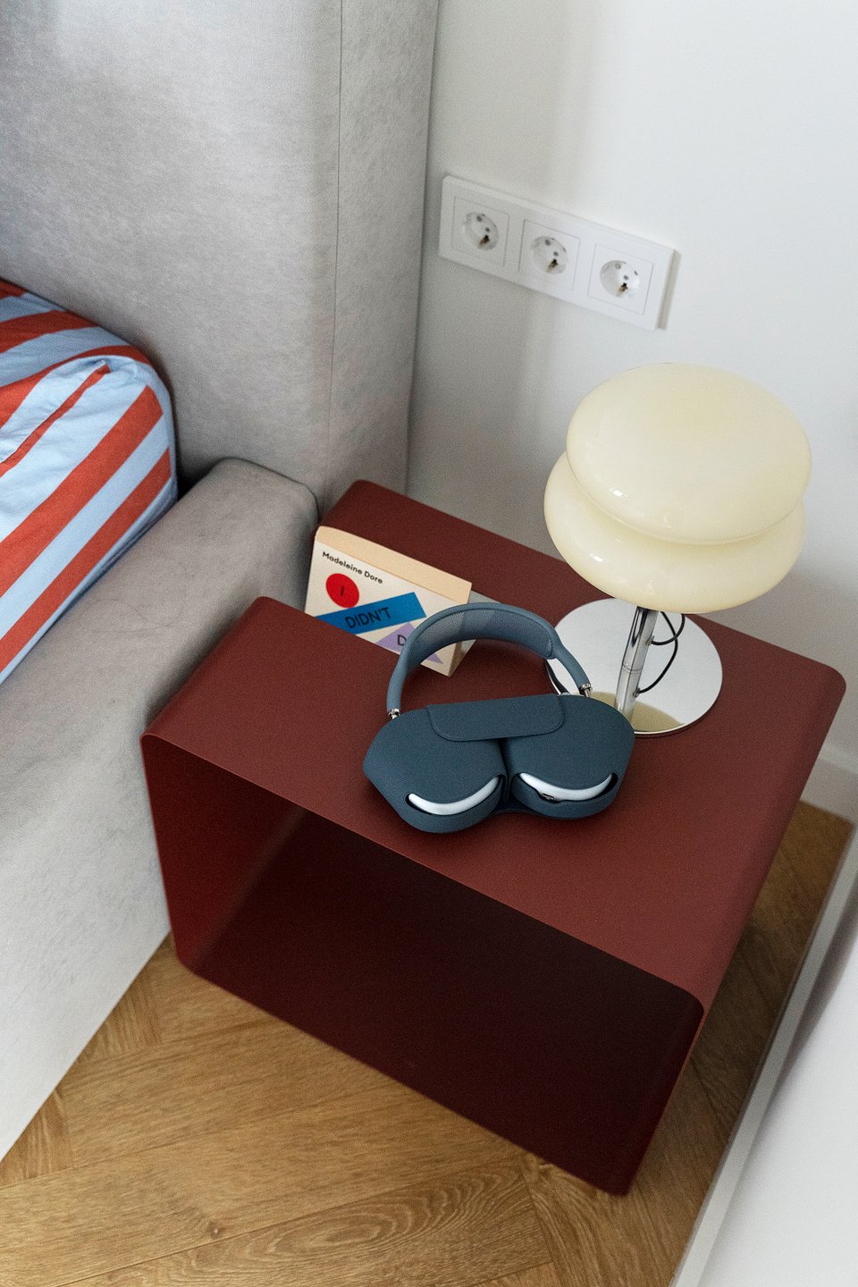 Тумбы Велари понравились нестандартным цветом и геометричностью. При этом благодаря отсутствию задних стенок они не выглядят громоздко. Хранить на такой тумбе слишком много вещей вряд ли удастся, но телефон, наушники, любимая книга и светильник отлично тут вписываются.