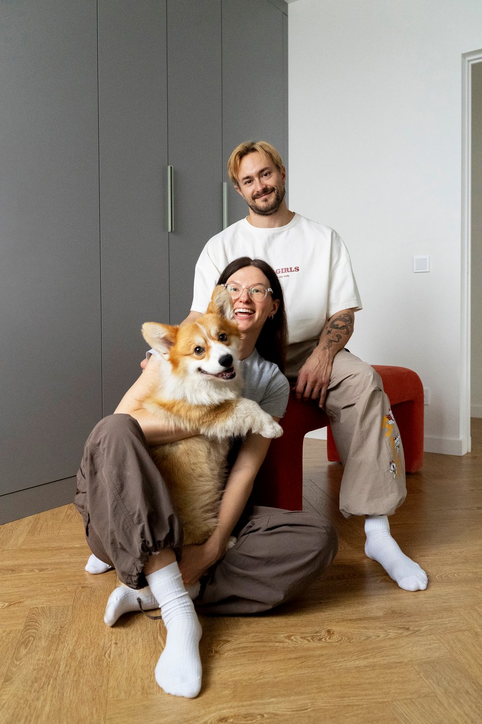 Кто здесь живет: семейная пара Валерия и Александр, корги Сырок, попугай Куки