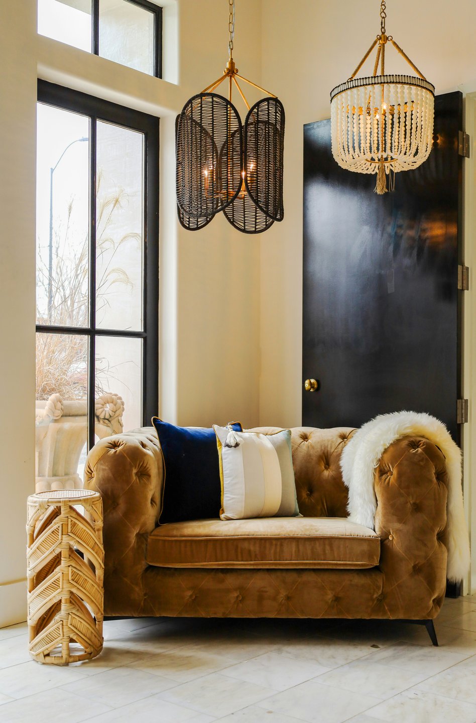 - Используйте растения и декор из натуральных материалов — они помогут связать разные направления в одной композиции.