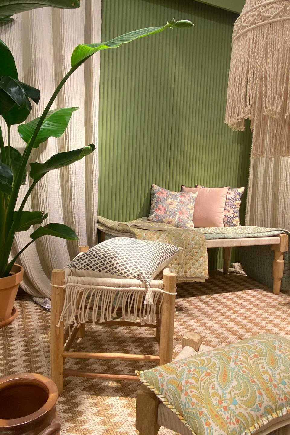 - Повторяйте ключевые цвета и материалы в разных элементах комнаты — в богемском интерьере важна ритмичность.