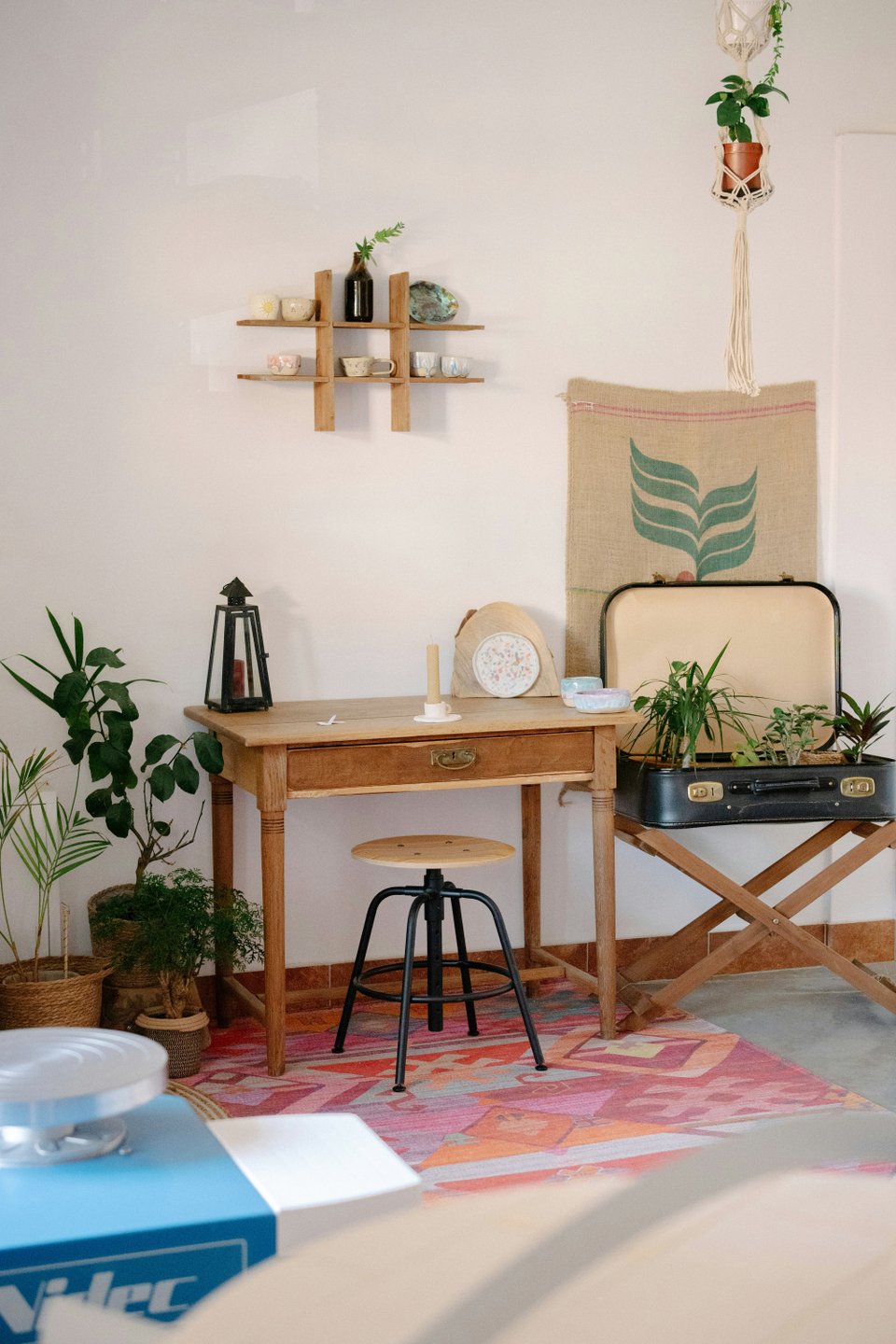 В богемском интерьере очень ценится ручной труд — изделия, сделанные своими руками или по традиционным технологиям. Это могут быть плетеные корзины, вязаные пледы, расписная керамика, макраме и ковры ручной работы, мозаичные или плетеные панно. Такой декор всегда придает пространству уникальность, подчеркивает индивидуальность хозяев и создает атмосферу тепла и творчества.