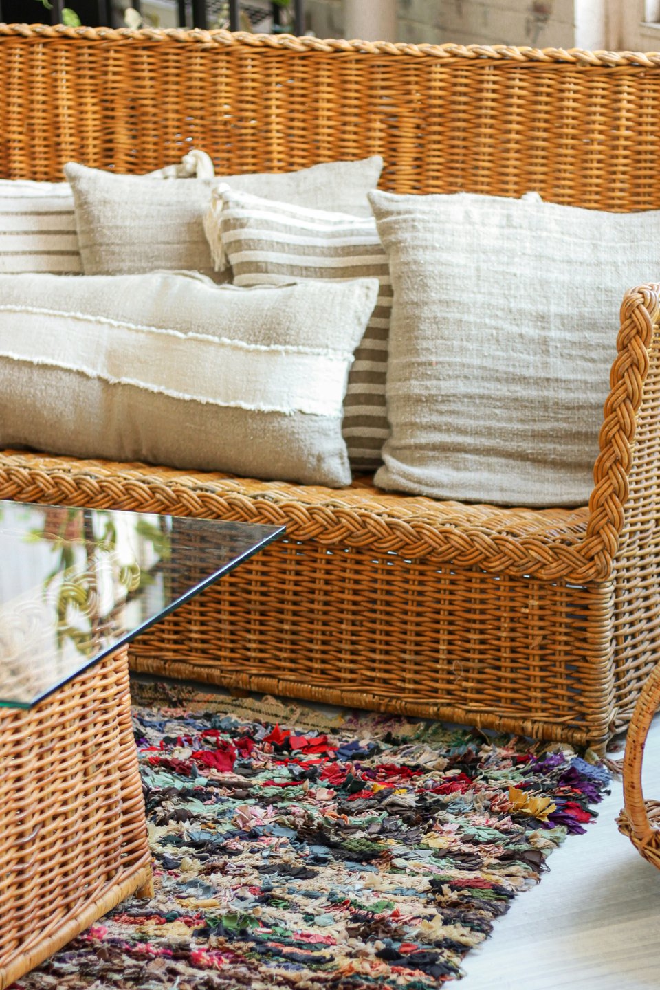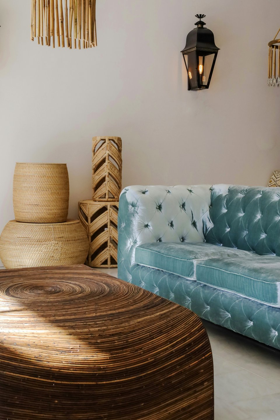 - плетеные корзины (используются для хранения, часто дополняют диванную зону);