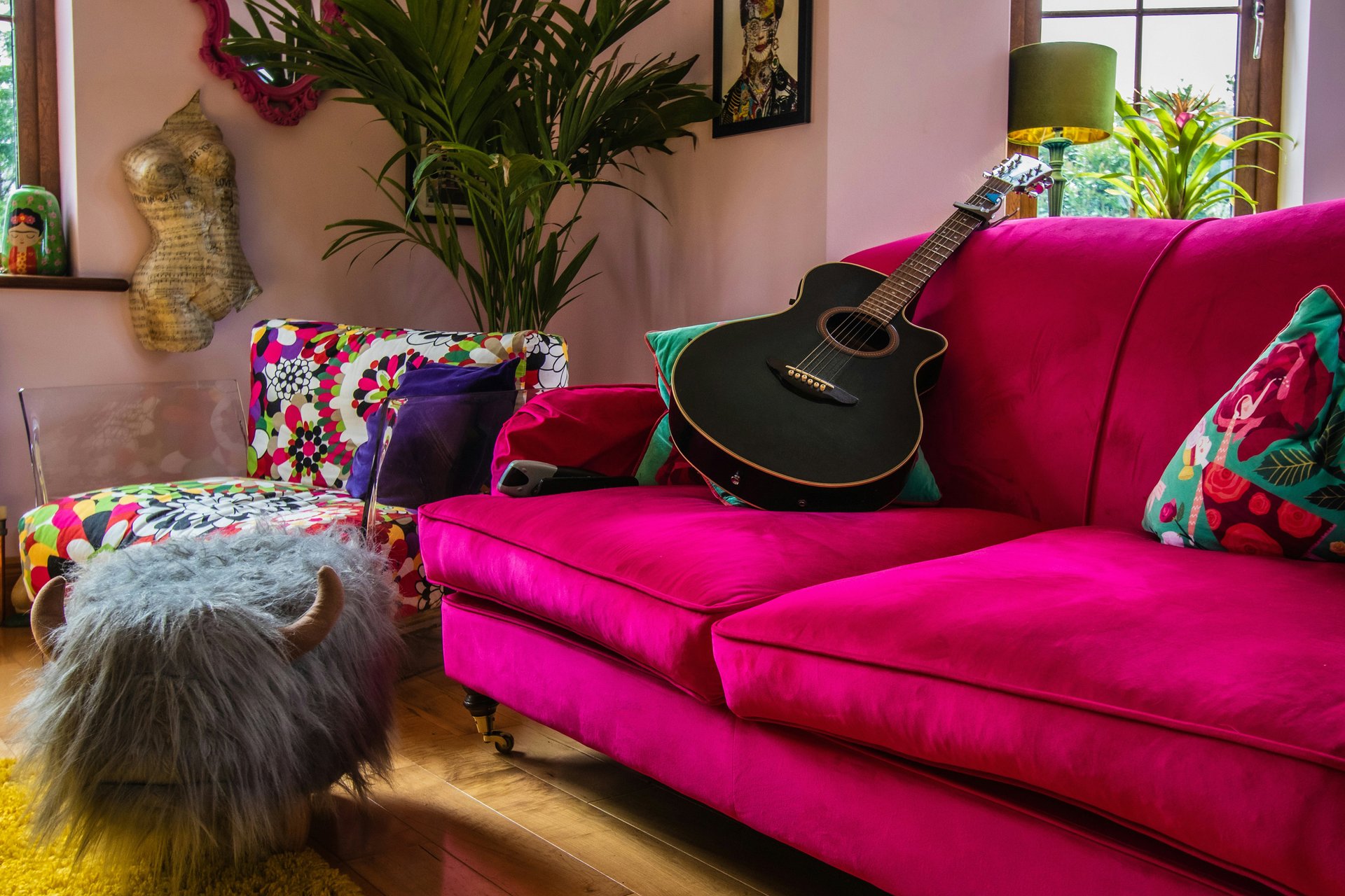 Попробуйте объединить этнические мотивы с винтажной мебелью и современными акцентами, главное — чтобы был общий визуальный язык.