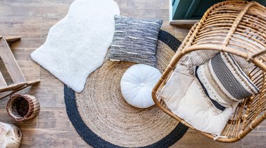 Декор: тоже экологичный. Много живой зелени — в напольных кашпо и небольших горшках, расставленных по пространству комнаты (мы уже рассказывали, как правильно разместить растения). Изделия из природных материалов: деревянные и каменные фигурки, поделки из ракушек, кусты из веток, плетеные корзины, хлопковый или льняной текстиль.